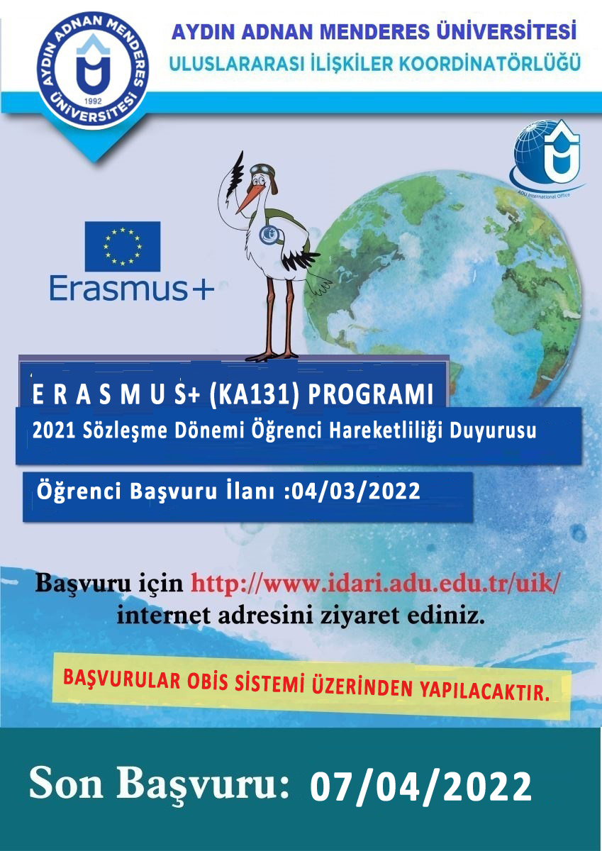 2021 Sözleşme Dönemi ERASMUS+ (KA131) Öğrenim ve Staj Hareketliliği Başvuru Duyurusu