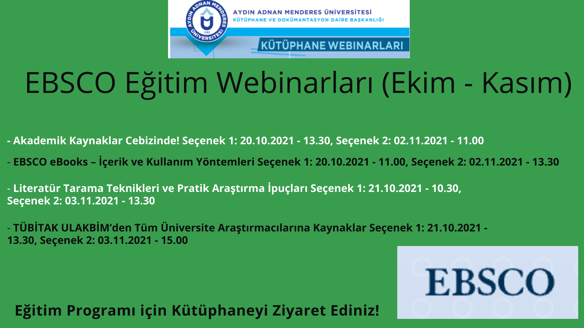 EBSCO tarafından eğitim webinarları düzenlenecektir.