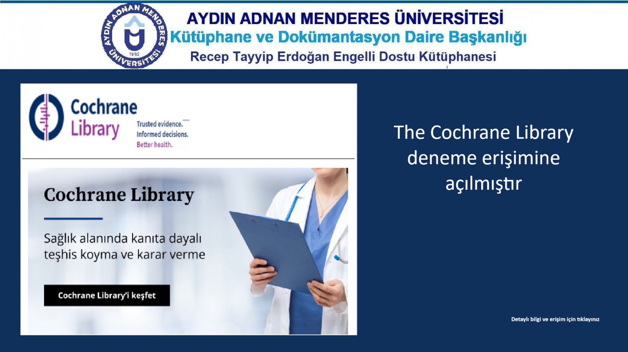 The Cochrane Library deneme erişimine açılmıştır