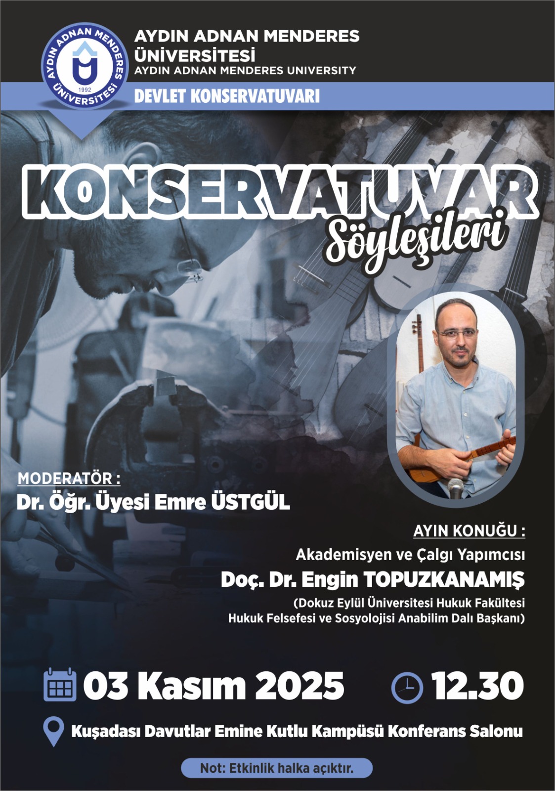 Söyleşi, 03 Kasım 2025 tarihinde Kuşadası Davutlar Emine Kutlu Kampüsü Konferans Salonu'nda gerçekleşecektir.