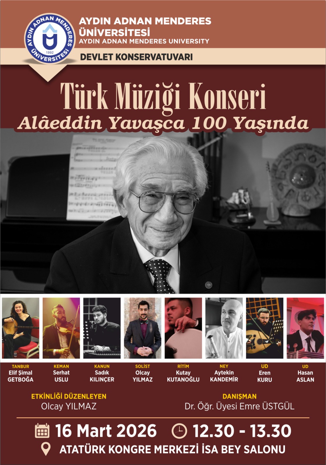 Konser, 16 Mart 2026 Tarihinde Türk Müziği Konseri, Atatürk Kongre Merkezi İsa Bey Salonu'nda gerçekleşecektir.