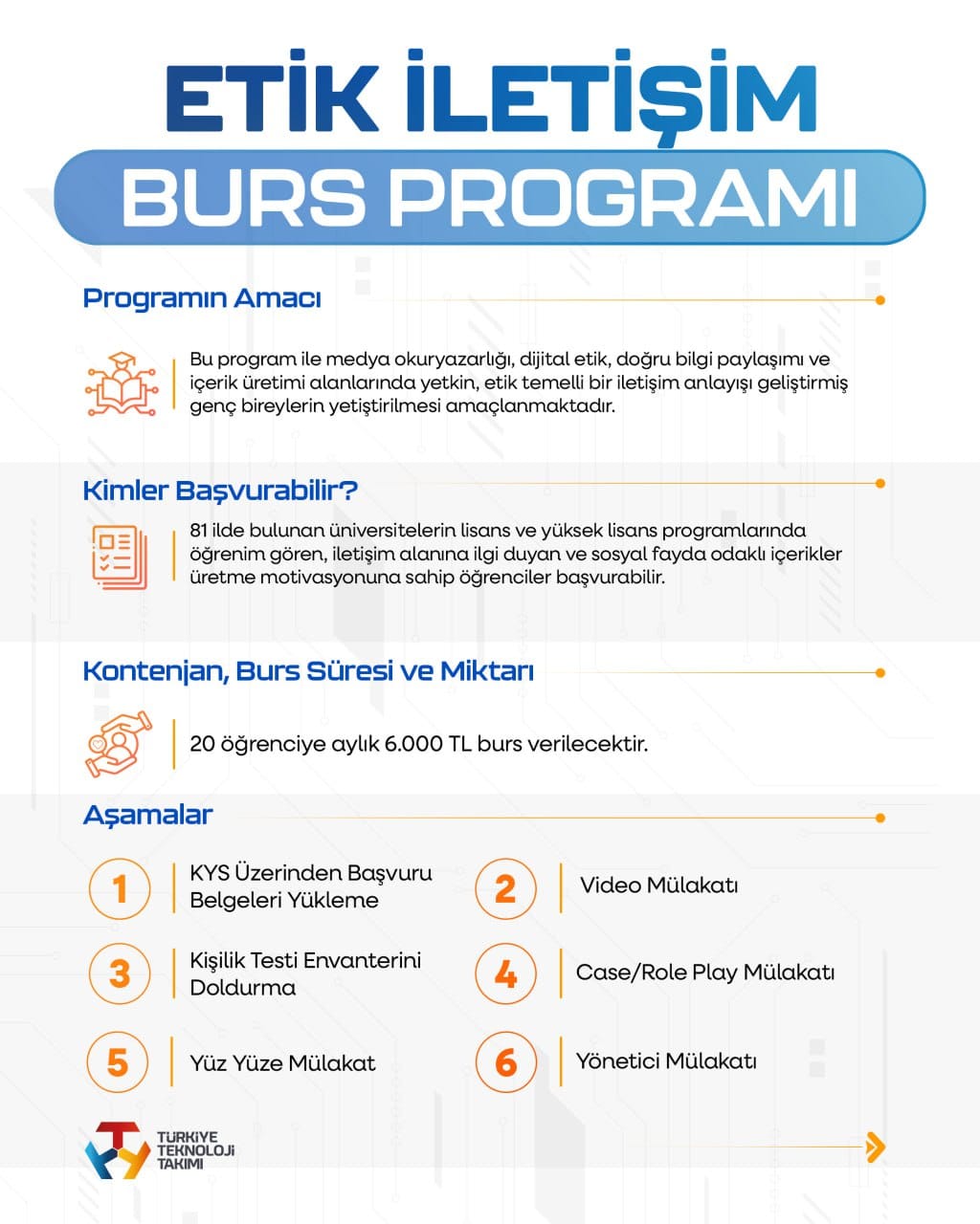 Bu yıl altı farklı kategori altında gerçekleştirilecek burs programı kapsamında gençlere hem kişisel gelişim hem de ülkemizin teknoloji yolculuğuna katkı sunma fırsatı sağlanacak. Programda Yükselen Yıldız, Sen Geleceksin, Eğitmen-Mentor, Etik İletişim, T3 AI Lisans Araştırmacı ve Eğitim Destek Burs Programı olmak üzere altı farklı alanda başvuru imkânı sunuluyor.