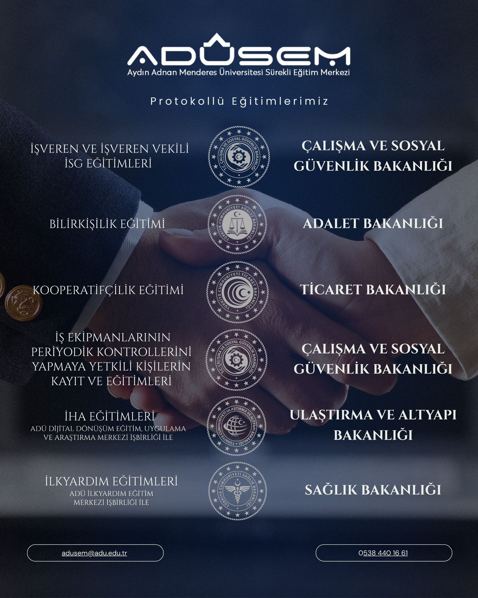 Sunumda, ADÜ Sürekli Eğitim Uygulama ve Araştırma Merkezi’nin (ADÜSEM) 2007 yılından bu yana yürüttüğü eğitim çalışmaları, kurumsal yapısı ve yasal dayanakları ele alındı. Ayrıca bakanlık protokolleri kapsamında yürütülen eğitimler ile kamu ve özel sektörle gerçekleştirilen iş birliklerine değinildi.