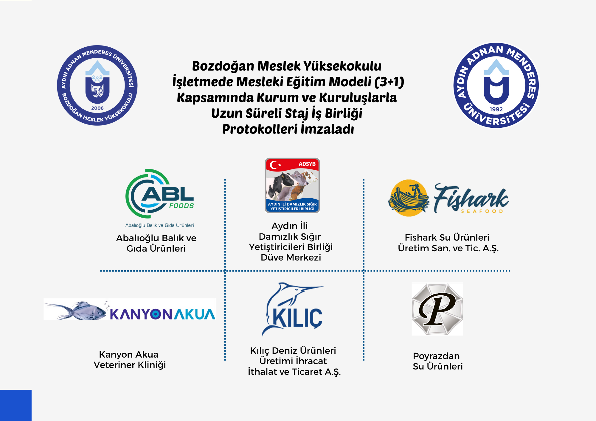 Protokoller; ABL Foods Abalıoğlu Balık ve Gıda Ürünleri, Aydın İli Damızlık Sığır Yetiştiricileri Birliği Düve Merkezi, Fishark Su Ürünleri, Kanyon Akua Veteriner Kliniği, Kılıç Deniz Ürünleri ve Poyrazdan Su Ürünleri ile imzalandı.