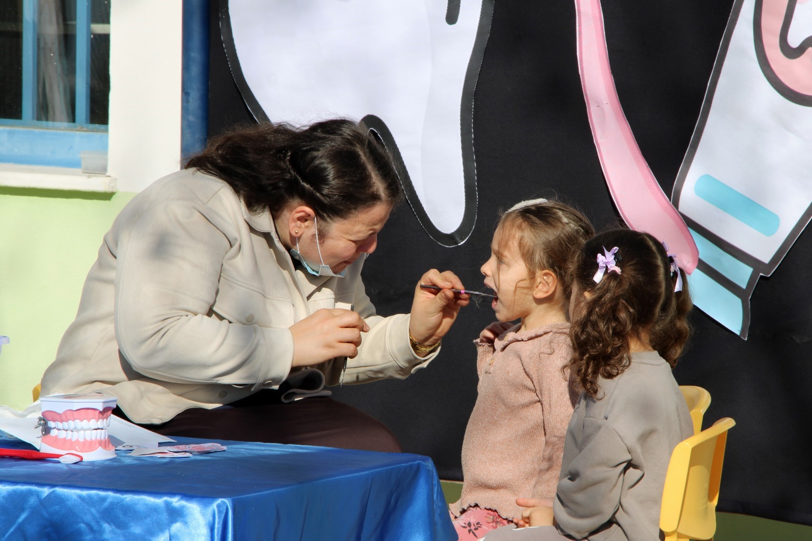 Program kapsamında Diş Hekimliği Fakültesi Dekan V. Prof. Dr. Sultan Keleş, minik öğrencilere diş sağlığı ve hijyen bilincinin kazandırılmasına yönelik eğitim verdi. Dr. Öğr. Üyesi Hafize Gamze Demirbaş Ünverdi ile doktora öğrencileri Dt. Özgün Öztürk ve Dt. Yiğit Karaloğlu’nun katılımıyla gerçekleştirilen etkinlikte çocuklara model üzerinden doğru diş fırçalama teknikleri uygulamalı olarak öğretildi. Ebeveyn onayı alınan öğrencilerin diş muayeneleri yapılarak sonuçlar bilgilendirme formuna kaydedildi. Etkinlik sonunda öğrencilere yaşlarına uygun diş fırçası ve diş macunu hediye edildi.