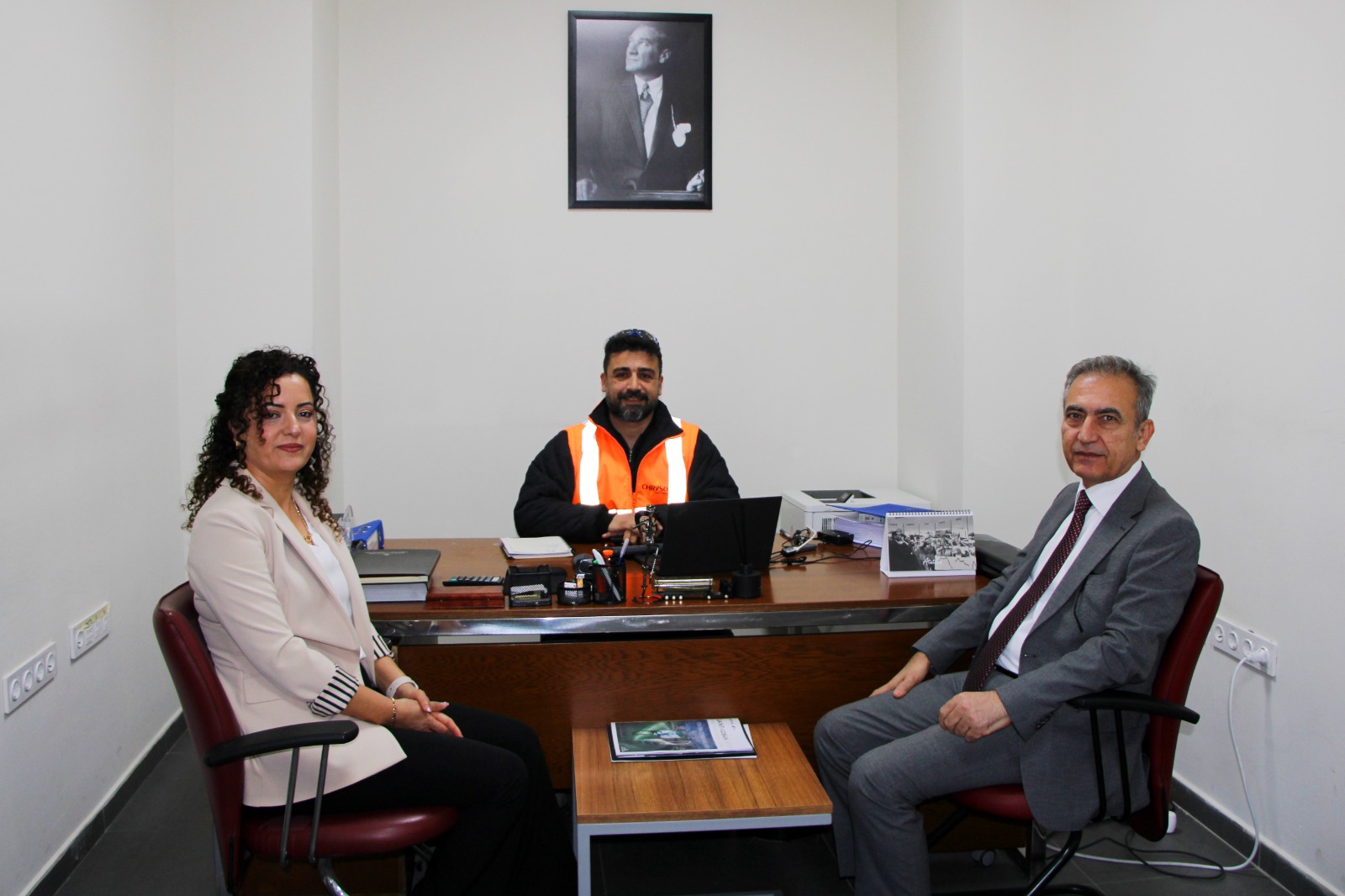 Görüşmede; Üniversitemiz Rektör Yardımcısı Prof. Dr. Cengiz Özarslan, Buharkent Belediye Başkanı ve OSB Başkanı Mehmet Erol, Buharkent OSB Müdürü Ender Aslan, CHRYSO Firma Müdürü Hüseyin Yıldız ve İKAK Koordinatör Yardımcısı Öğr. Gör. Sibel Günay yer aldı.