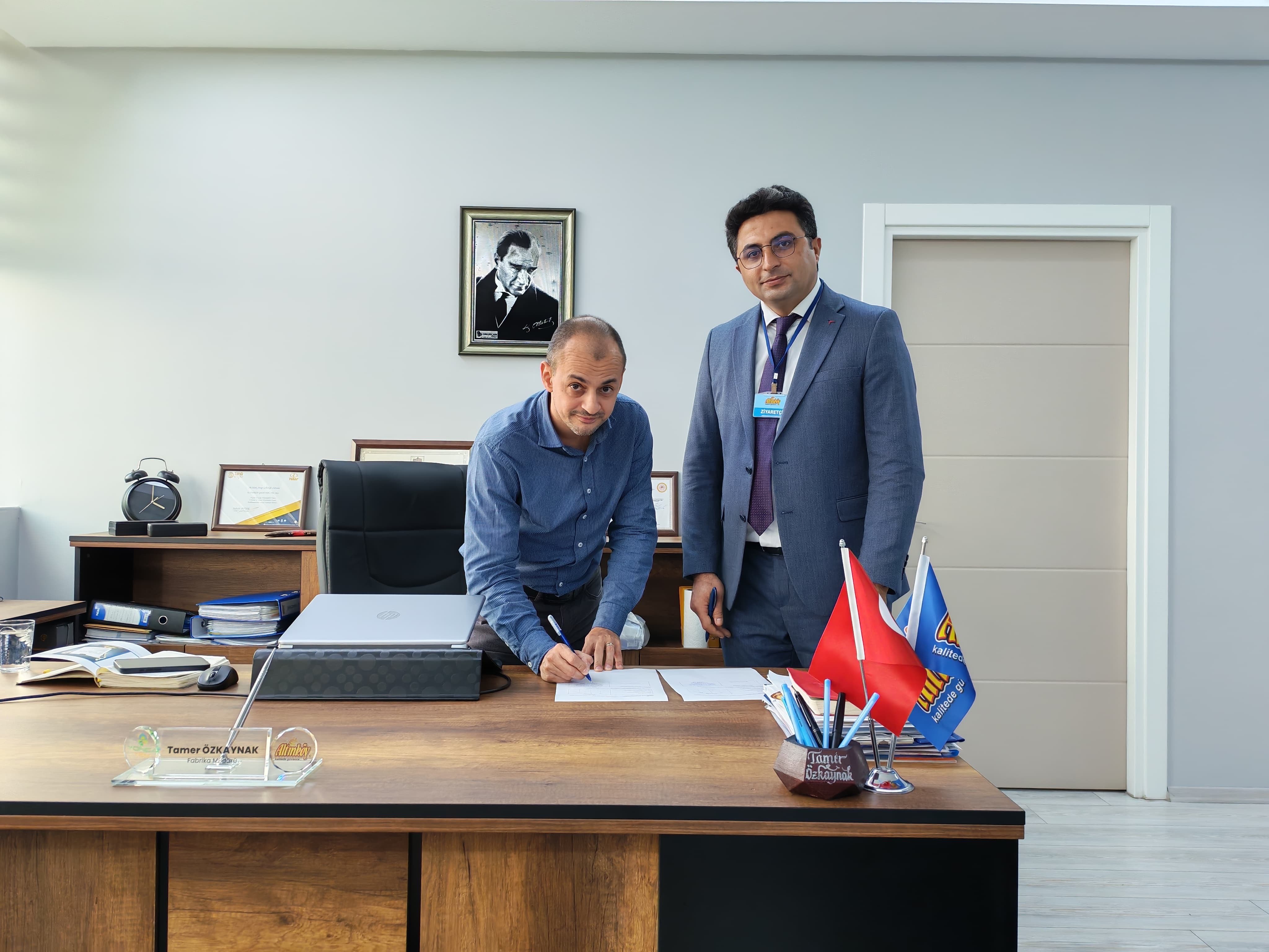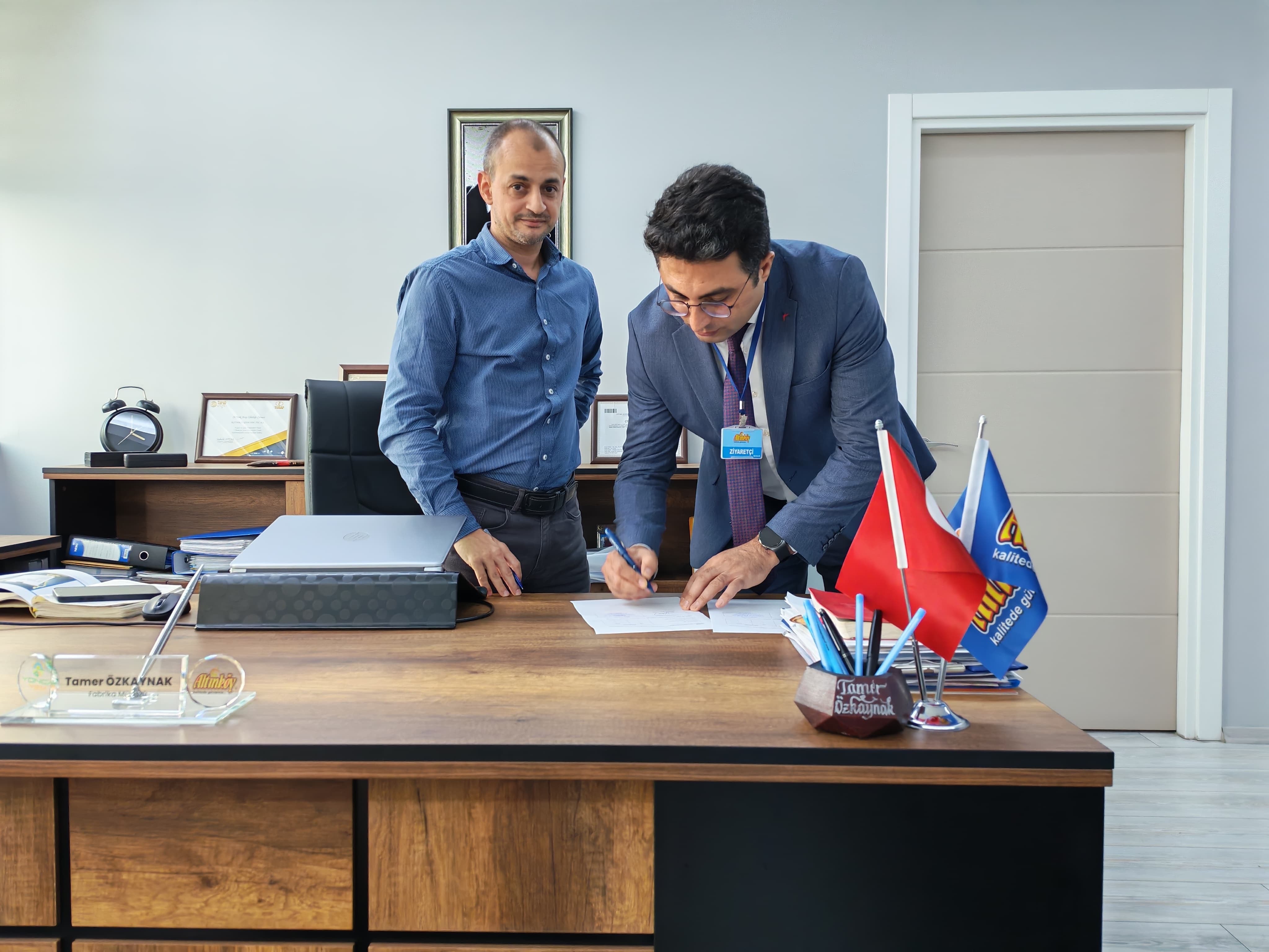 Protokol törenine Çine MYO Müdürü Öğr. Gör. Dr. Yakup Karaca ile Altınköy Gıda San. ve Tic. Ltd. Şti. Fabrika Müdürü Tamer Özkaymak katıldı.