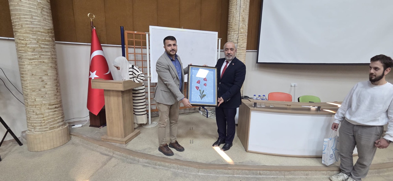 Programın sonunda Dekan Yardımcısı Dr. Öğr. Üyesi Muhammet Çol tarafından Rektörümüz Prof. Dr. Bülent Kent adına Prof. Dr. Fethi Ahmet Polat’a hediye takdiminde bulunuldu. Yoğun katılımla gerçekleştirilen konferans, soru-cevap bölümünün ardından sona erdi.