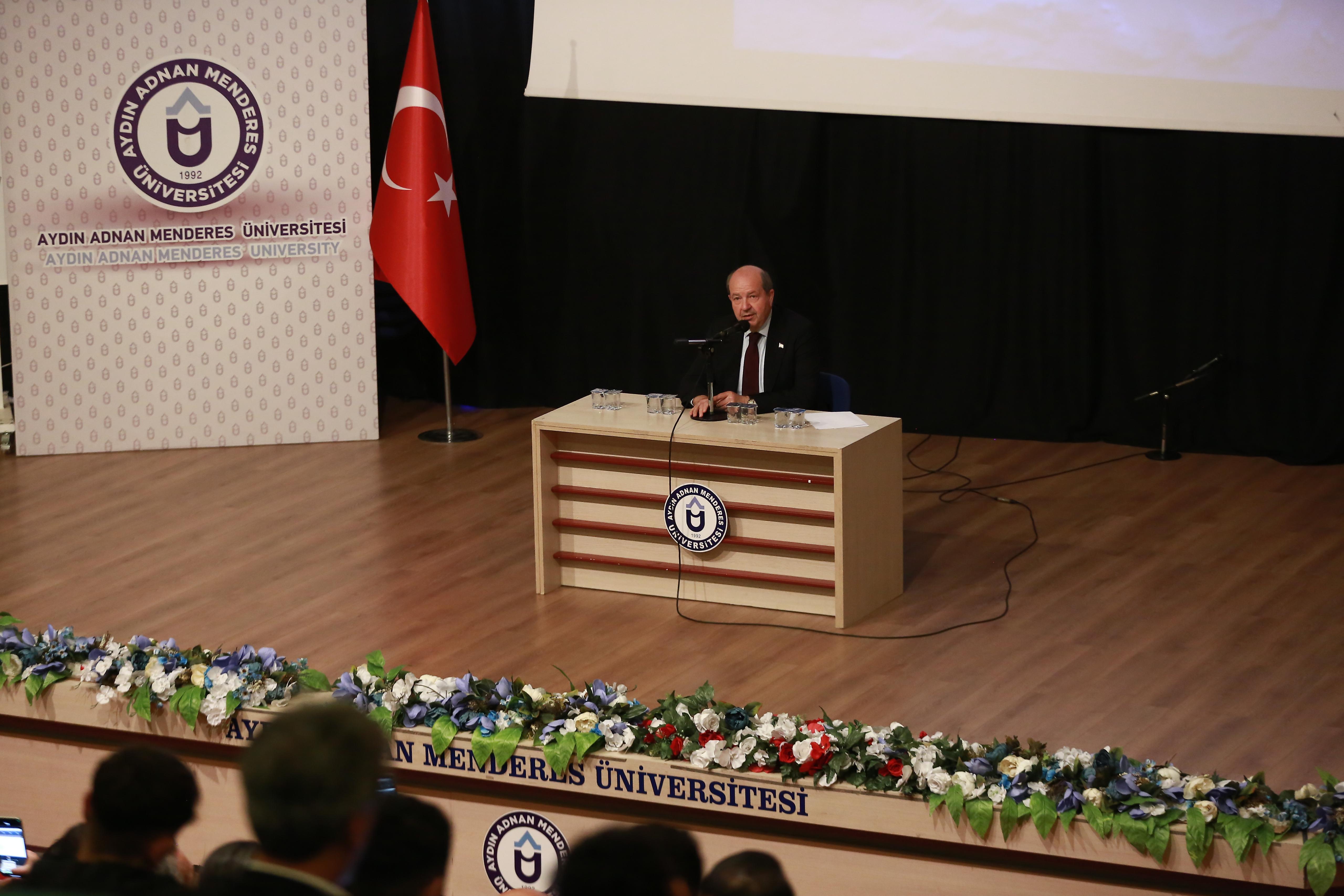Saygı duruşu ve İstiklal Marşı’nın ardından Üniversitemiz Otağ Topluluğu Danışmanı Doç. Dr. Ahmet Aytaç ve Ülkü Ocakları Aydın İl Başkanı Okan Bozkurt açış konuşmalarında, Türk dünyasında birlik anlayışının geliştirilmesi ve Kuzey Kıbrıs Türk Cumhuriyeti’nin stratejik öneminin korunmasına dikkat çekerek ortak tarih ve değerler etrafında güçlenen iş birliklerinin önemini vurguladı.