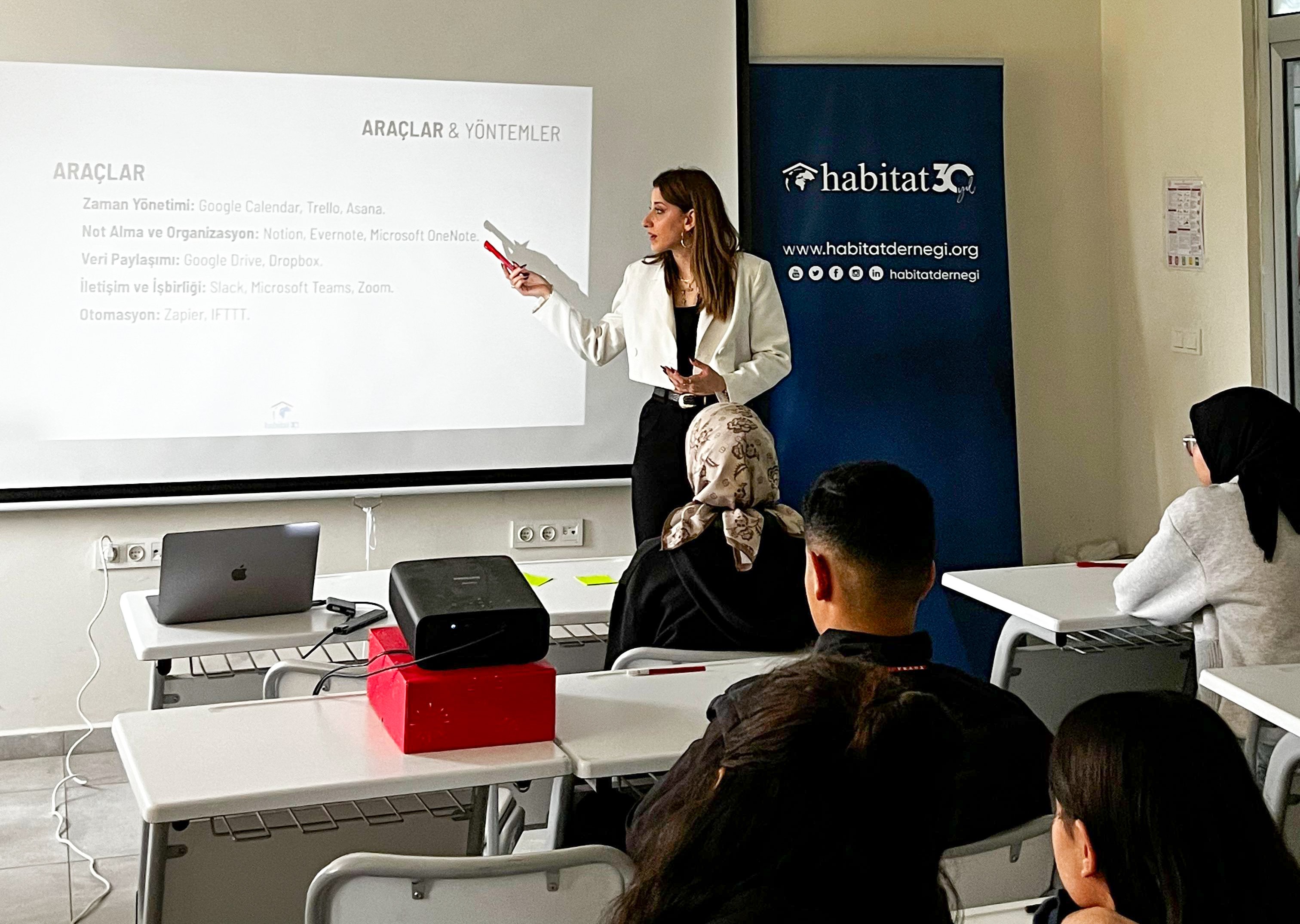 Eğitim kapsamında Öğr. Gör. Hüseyin Emin Kurnaz ve Halkla İlişkiler ve Tanıtım Programı öğrencisi Esma Zeki tarafından katılımcılara dijital araçların etkin kullanımı, sosyal medya farkındalığı ve dijital verimlilik konularında kapsamlı bilgiler aktarıldı. Eğitimde ayrıca dijital ortamda doğru içerik üretimi, bilinçli kullanım alışkanlıkları ve güvenli internet davranışları ele alındı.