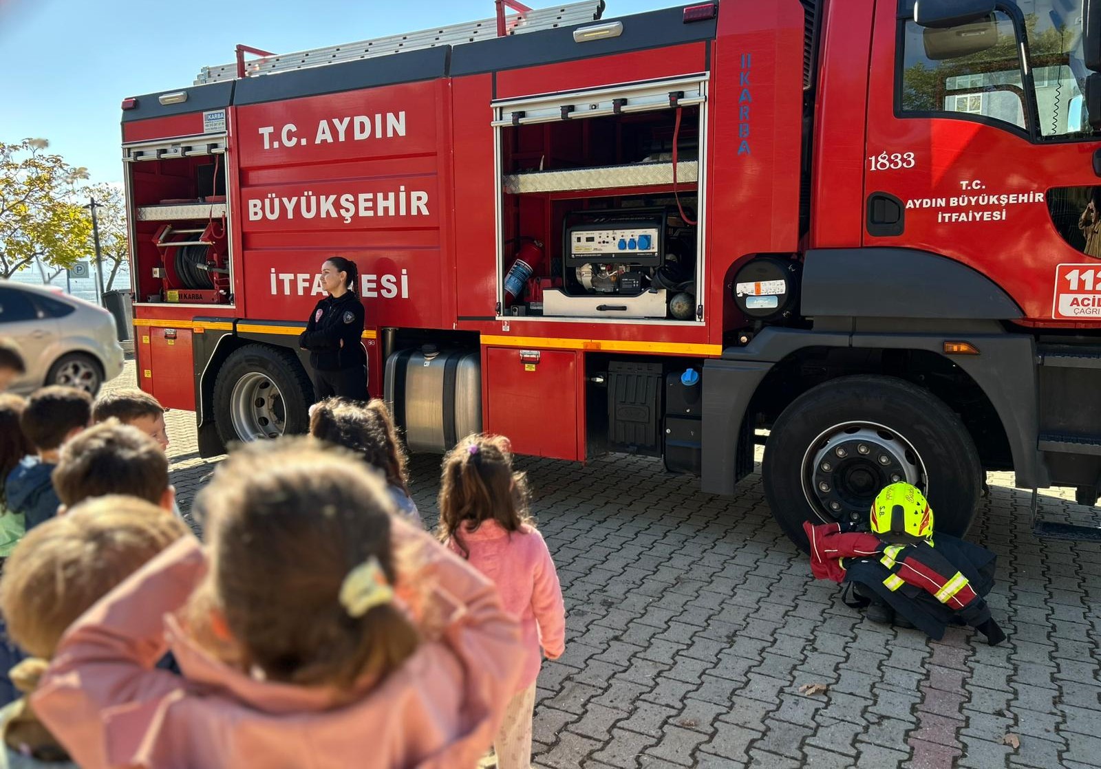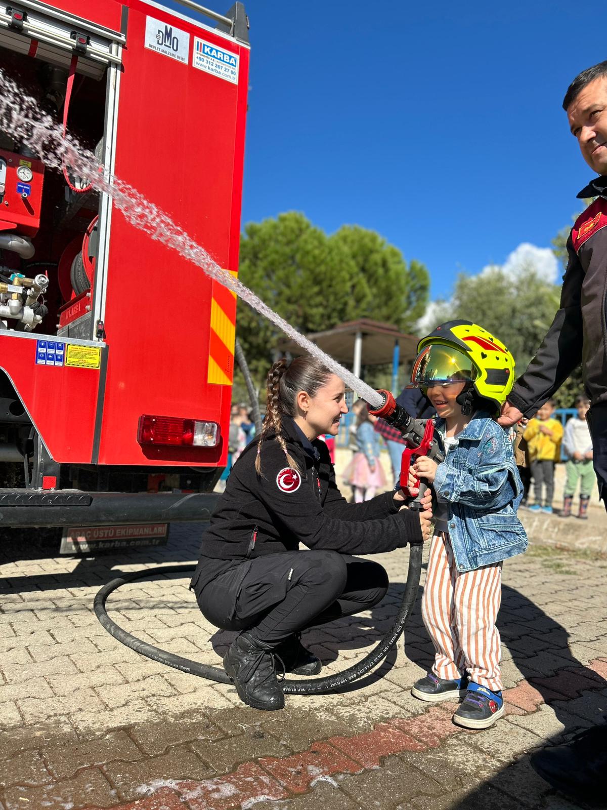 Etkinlik kapsamında minik öğrencilere, yangın anında doğru davranış biçimleri, temel güvenlik kuralları ve itfaiyecilerin görevleri hakkında eğlenceli ve öğretici sunumlar yapıldı. İtfaiye ekiplerinin rehberliğinde gerçekleşen etkinlikte çocuklar, itfaiye araçlarını yakından tanıma, ekipmanları inceleme ve hortumla su sıkma gibi keyifli deneyimler yaşadı.