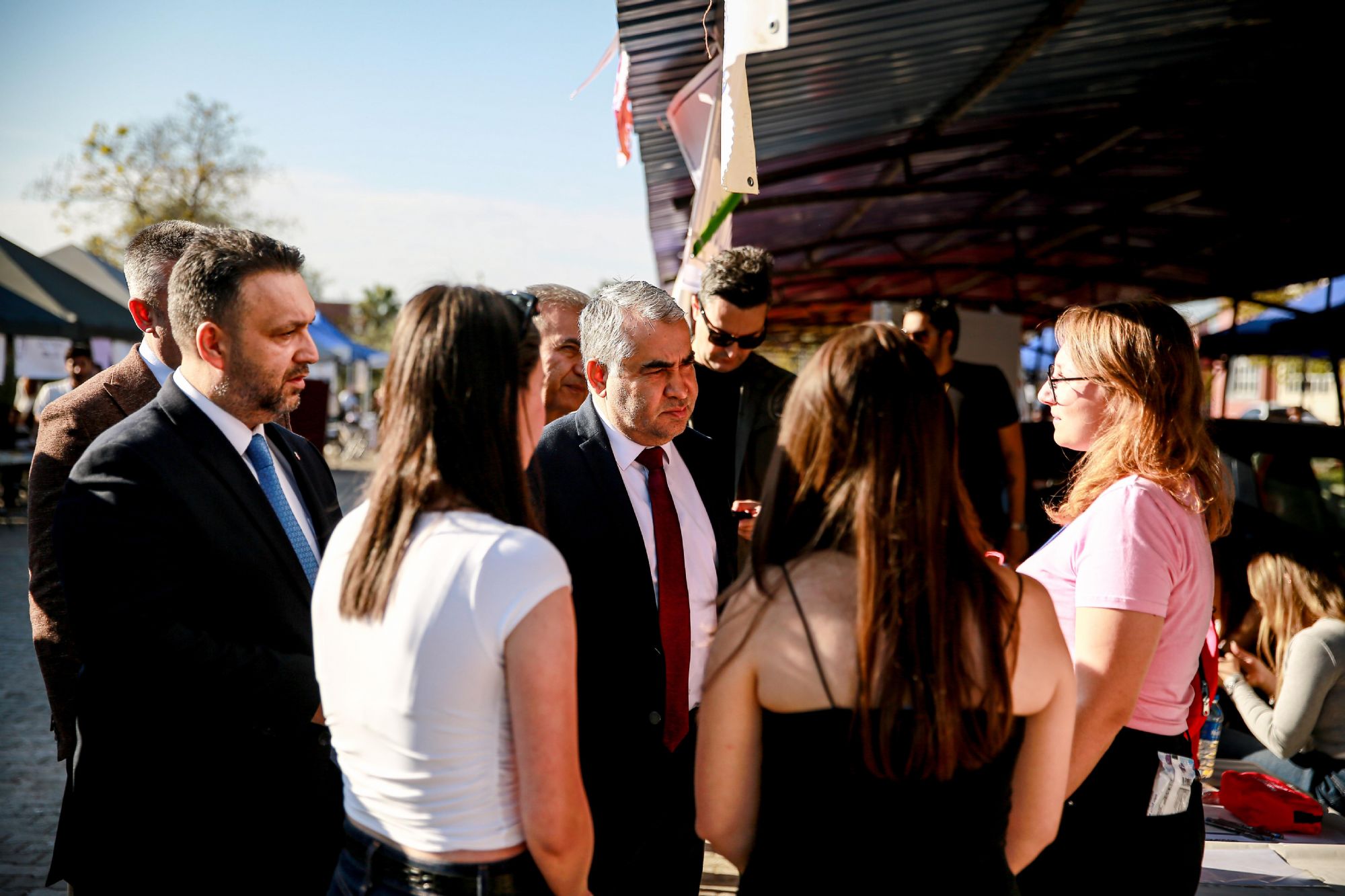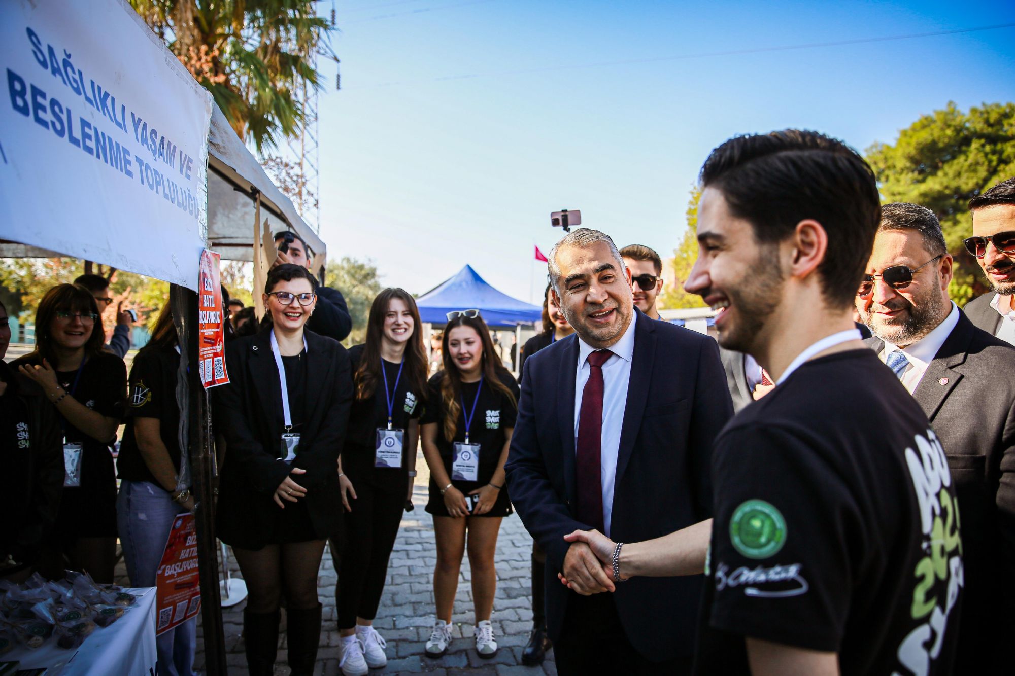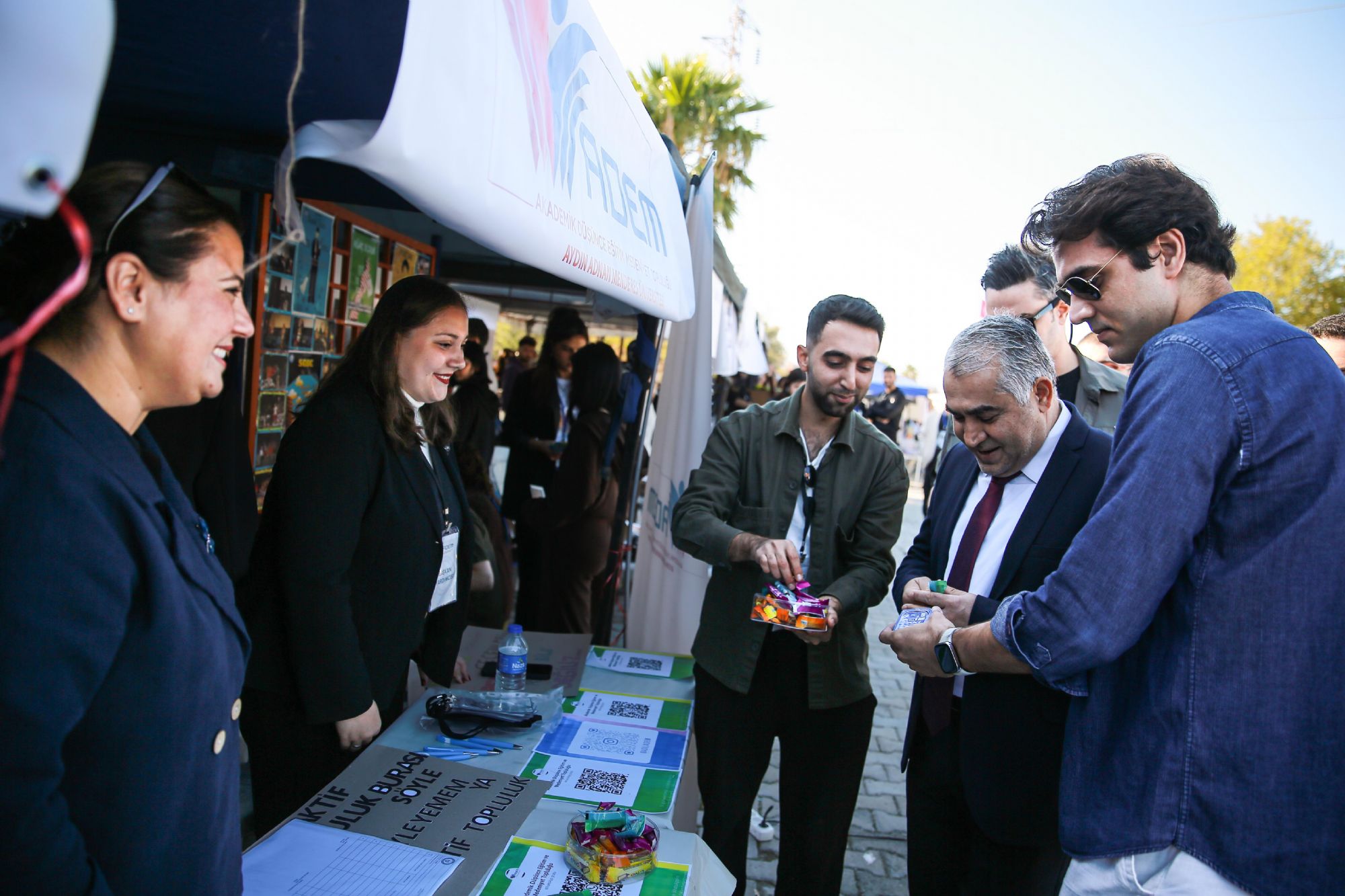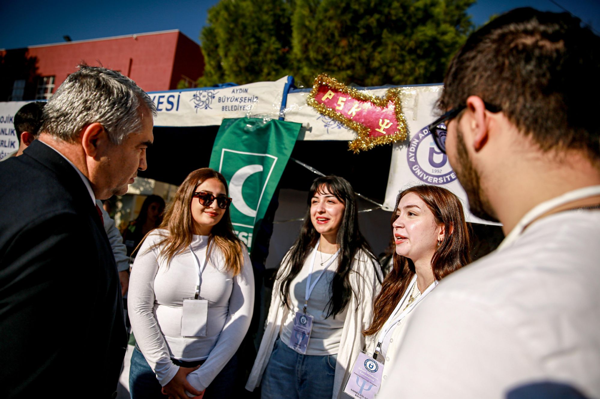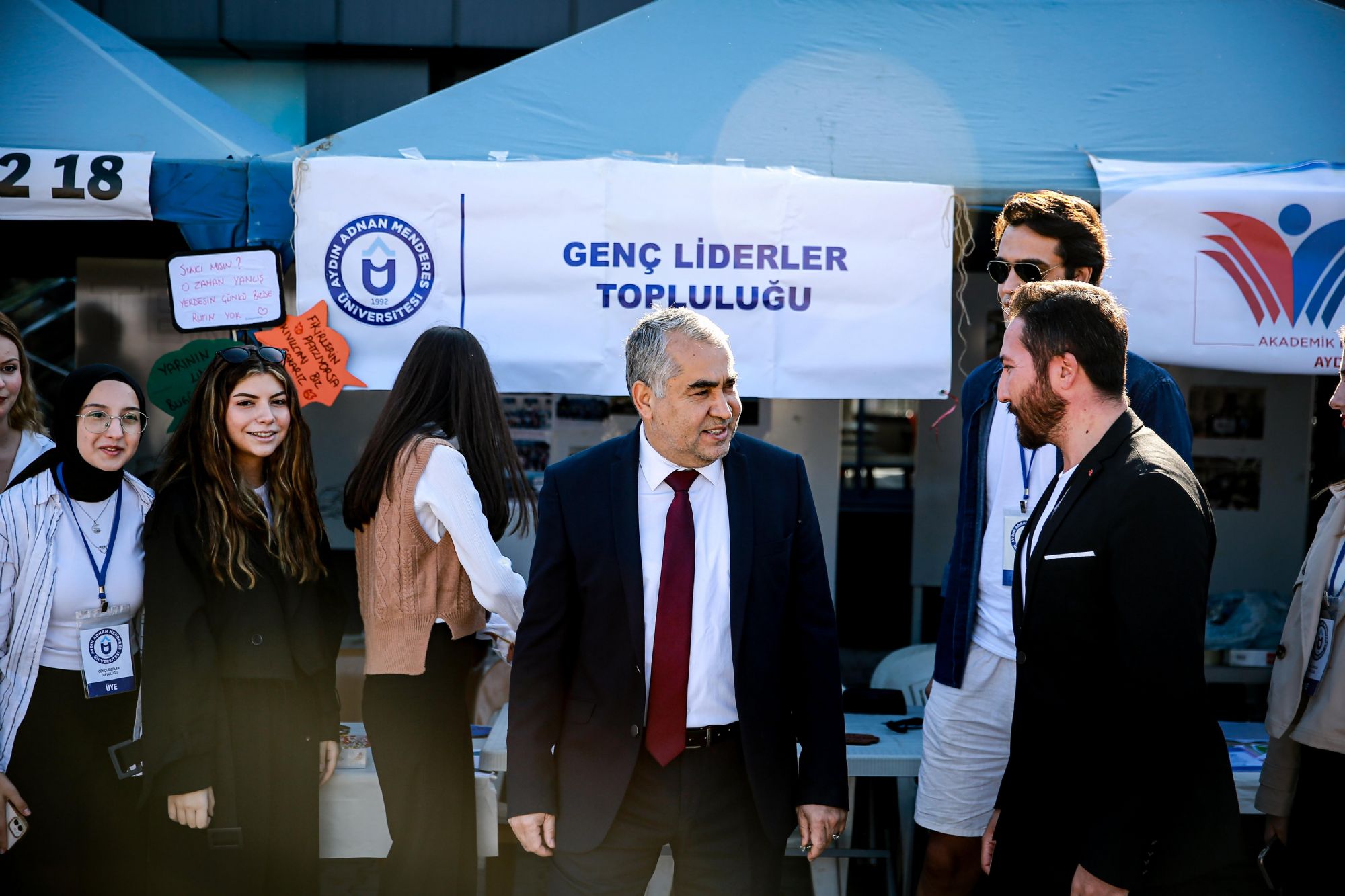 Üniversitemiz Rektörü Prof. Dr. Bülent Kent, öğrenci toplulukları tarafından açılan stantları ziyaret etti. Ziyaret sırasında topluluk temsilcilerinden yürütmeyi planladıkları çalışmalar hakkında bilgi alan Rektörümüz Prof. Dr. Bülent Kent, öğrencilerle sohbet ederek sosyal faaliyetlerin her zaman destekçisi olduklarını ifade etti. Aydın Adnan Menderes Üniversitesinin öğrenci odaklı bir anlayışı benimsediğini vurgulayan Rektörümüz Prof. Dr. Bülent Kent, eğitimi bir gelişim süreci olarak değerlendirdiklerini belirterek öğrencilerin sadece akademik açıdan değil, sosyal yönden de donanımlı bireyler olarak yetişmelerine önem verdiklerini dile getirdi.