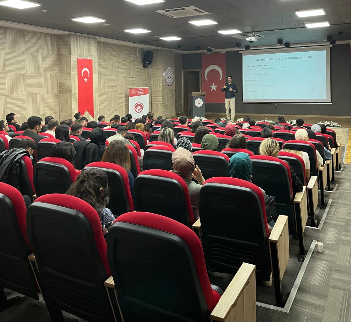 Aydın Aile ve Sosyal Hizmetler İl Müdürlüğünde hizmet içi eğitim kapsamında düzenlenen programda, kuruma yeni başlayan personele yönelik olarak; protokolün önemi ve tarihçesi, Türk-İslam medeniyetlerinde protokol uygulamaları, iş ve sosyal hayatta protokol, protokol türleri ve listeleri, tören protokolü, kurumsal protokol etkinlikleri ile kurumlarda kılık kıyafet kuralları gibi konular ele alındı.