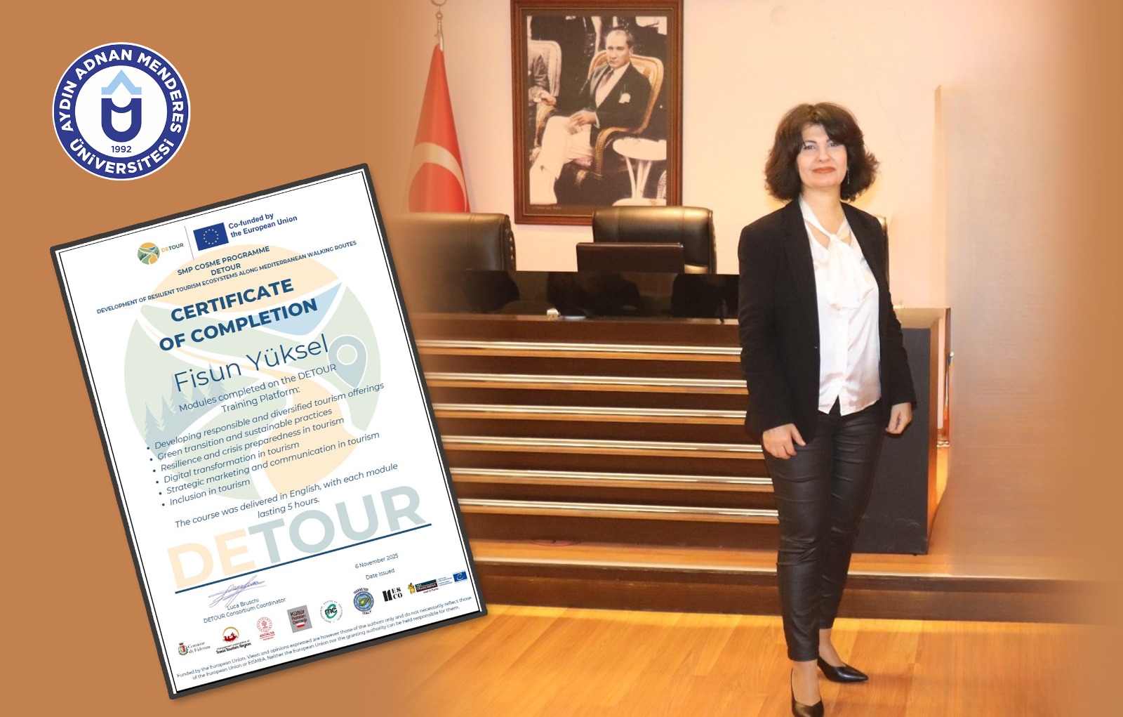 İtalya, Türkiye, Bulgaristan, Yunanistan ve İspanya’nın da aralarında bulunduğu sekiz ortaklı uluslararası proje kapsamında Prof. Dr. Fisun Yüksel, Avrupa Birliği tarafından yürütülen Detour Projesi çerçevesinde önemli bir başarıya imza attı. Projenin başlangıç aşamasında, Avrupa Birliği’nin ekonomik ve siyasi birliğine ilişkin güncel politika ve uygulamaları kapsayan altı modülden oluşan kapsamlı bir çevrim içi eğitimi tamamlayan Prof. Dr. Yüksel, sınav süreçlerini başarıyla geçerek Detour Projesi’nin uluslararası uzman ağına dâhil oldu.