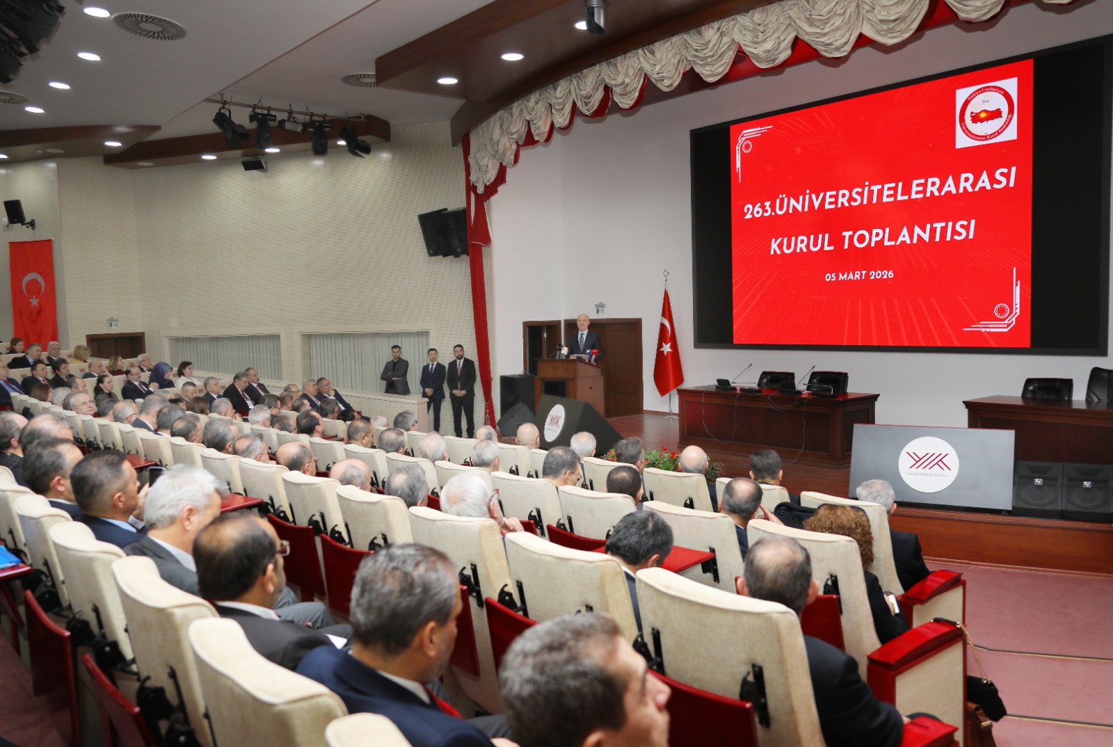 YÖK Başkanı Prof. Dr. Erol Özvar’ın başkanlığında gerçekleştirilen toplantıya; ÜAK Başkanı Prof. Dr. Hüsnü Kapu, Üniversitemiz Rektörü Prof. Dr. Bülent Kent ile Üniversitelerarası Kurul üyeleri ve çok sayıda üniversite rektörü katıldı.