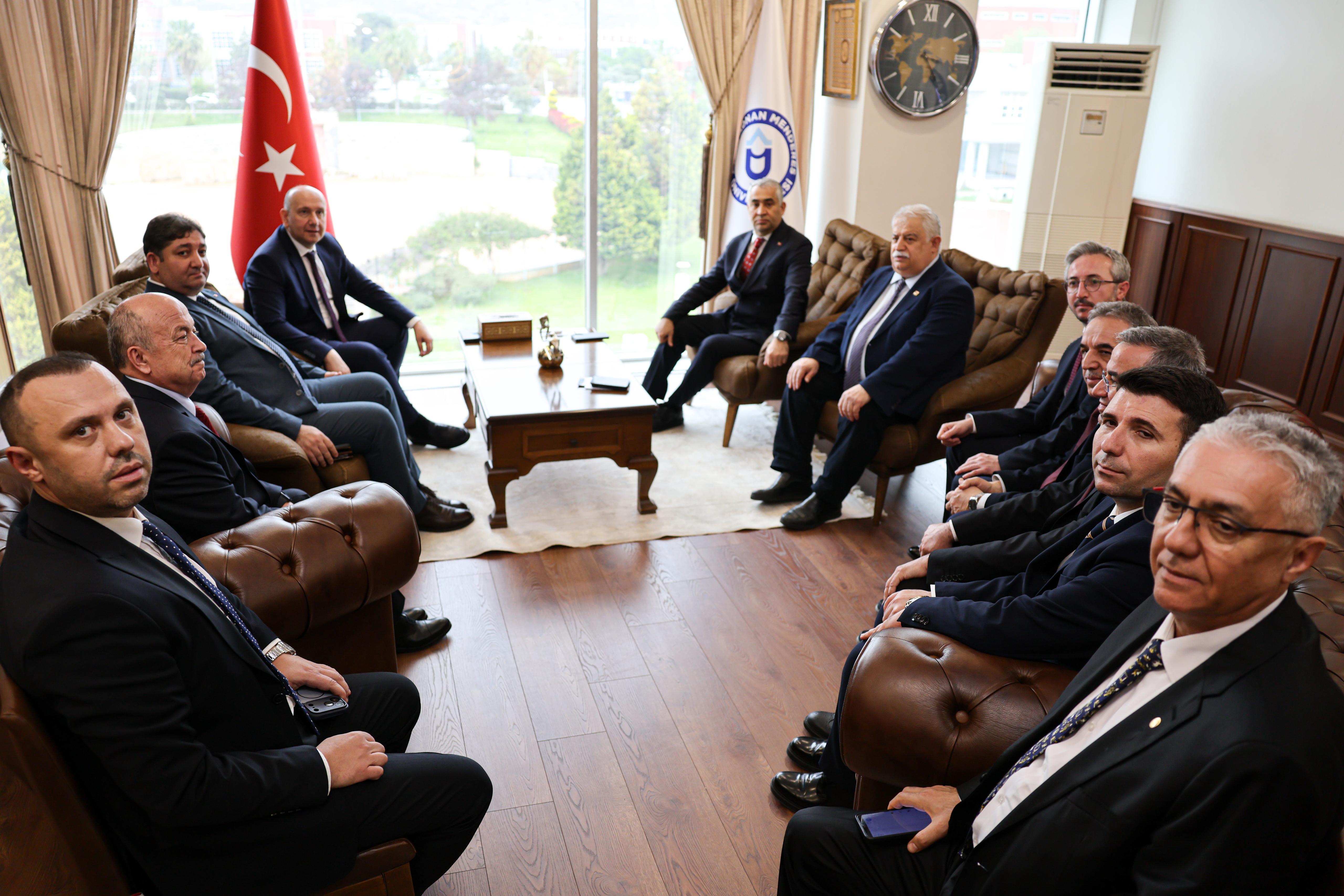 Ziyarette ayrıca, üniversitemiz ev sahipliğinde düzenlenen EGEKAF’26 (Ege Kariyer Fuarı 2026) kapsamında gerçekleştirilen faaliyetler ve kurumlar arası iş birliğinin güçlendirilmesine yönelik çalışmalar hakkında değerlendirmelerde bulunulurken, katılımcılar karşılıklı görüş alışverişinde bulundu.