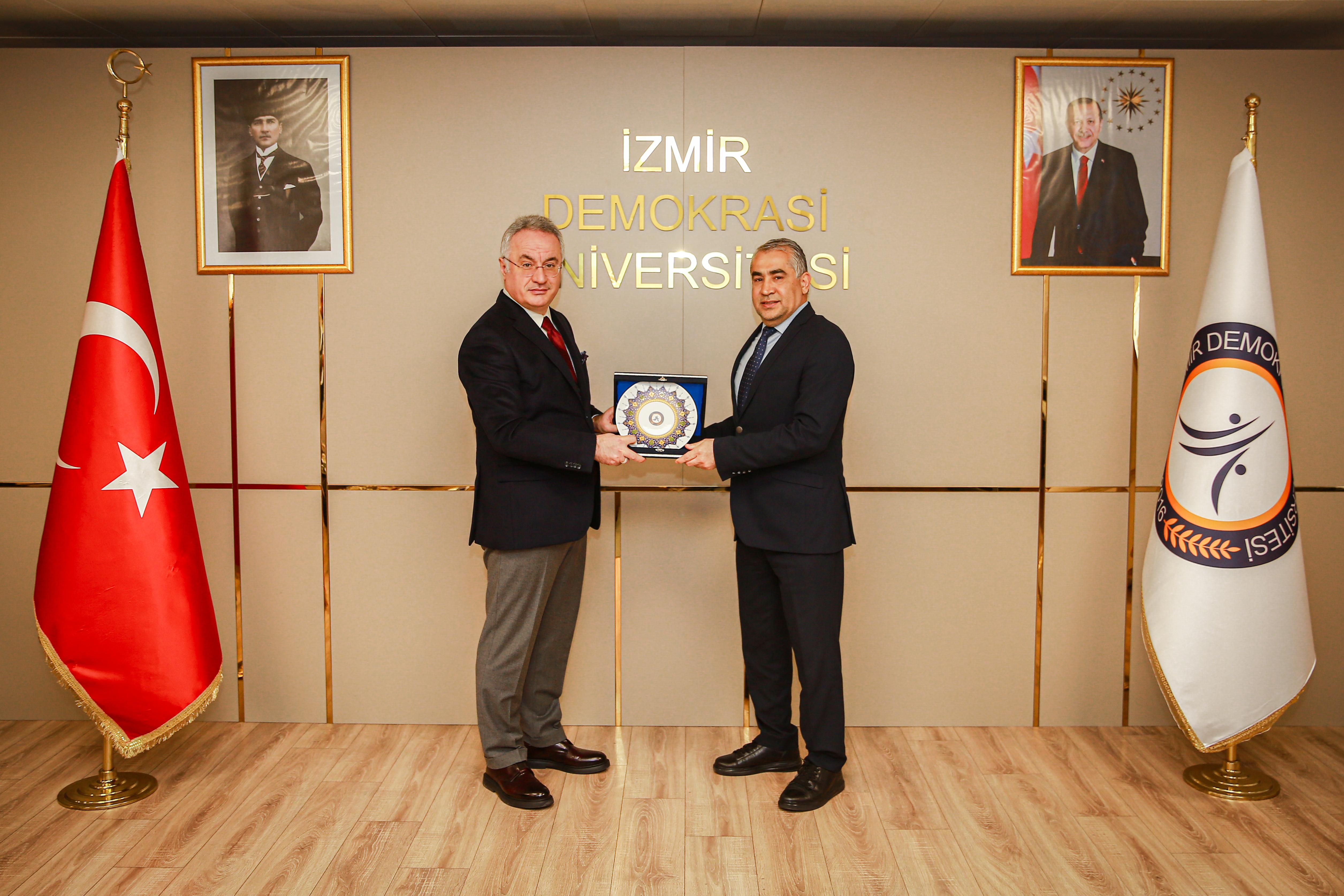 Görüşmede, Üniversitemiz Rektör Yardımcısı Prof. Dr. Cengiz Özarslan, İzmir Demokrasi Üniversitesi Rektör Yardımcıları Prof. Dr. Devrim Ünay ve Prof. Dr. Ecehan Aras, Genel Sekreter V. Prof. Dr. Mikail Acıpınar ile Üniversitemiz İKAK Koordinatörü Öğr. Gör. Ali Bektaş Çiftçi yer aldı.