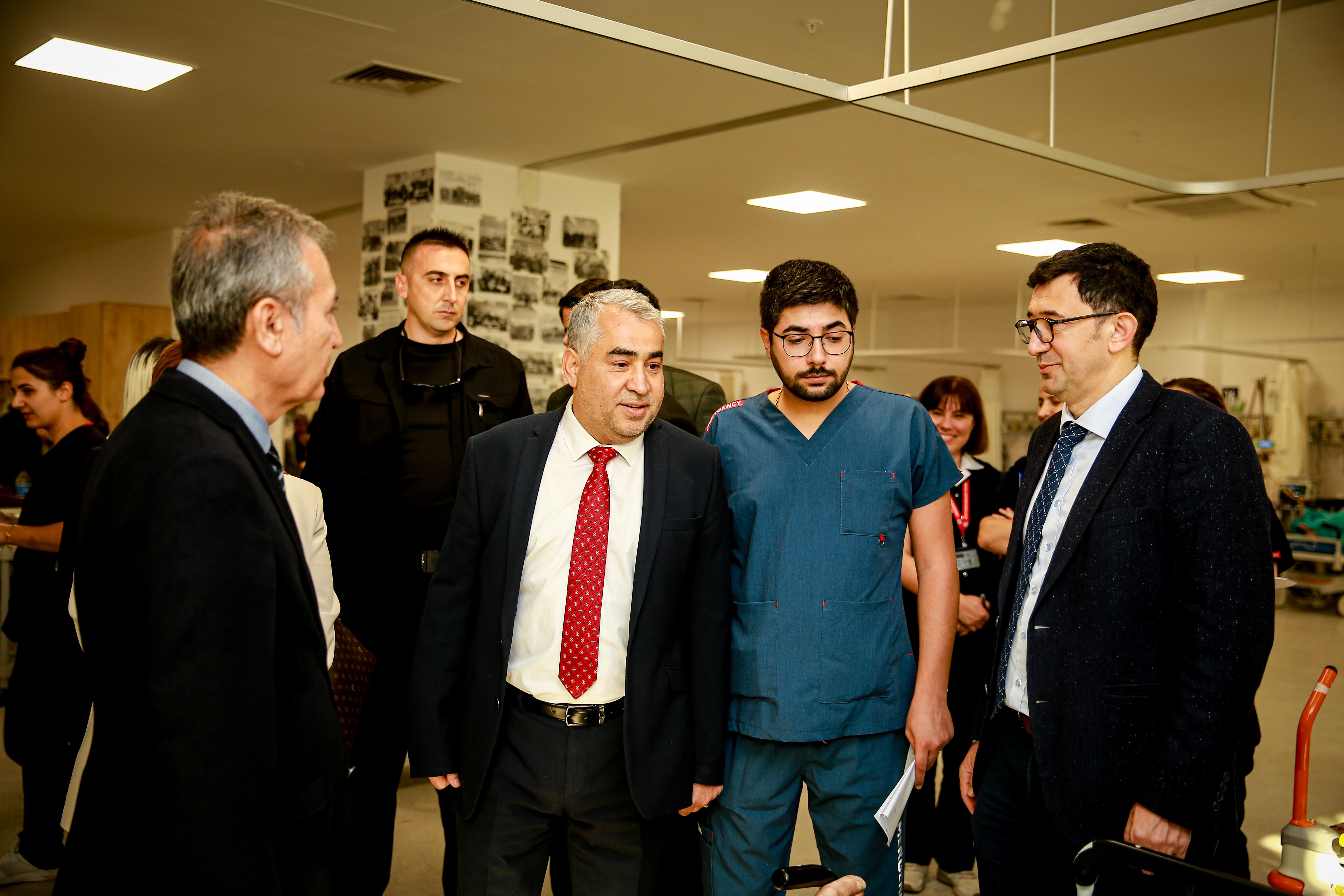 Ziyaret kapsamında Rektörümüz Prof. Dr. Bülent Kent, Acil Servis alanlarında da incelemelerde bulunarak hastalara ve yakınlarına geçmiş olsun dileklerini iletti. Ayrıca Sağlık Kafe, Enfeksiyon Hastalıkları, Romatoloji ve İmmünoloji Servisleri ile Başhekimlik makamını ziyaret etti.
