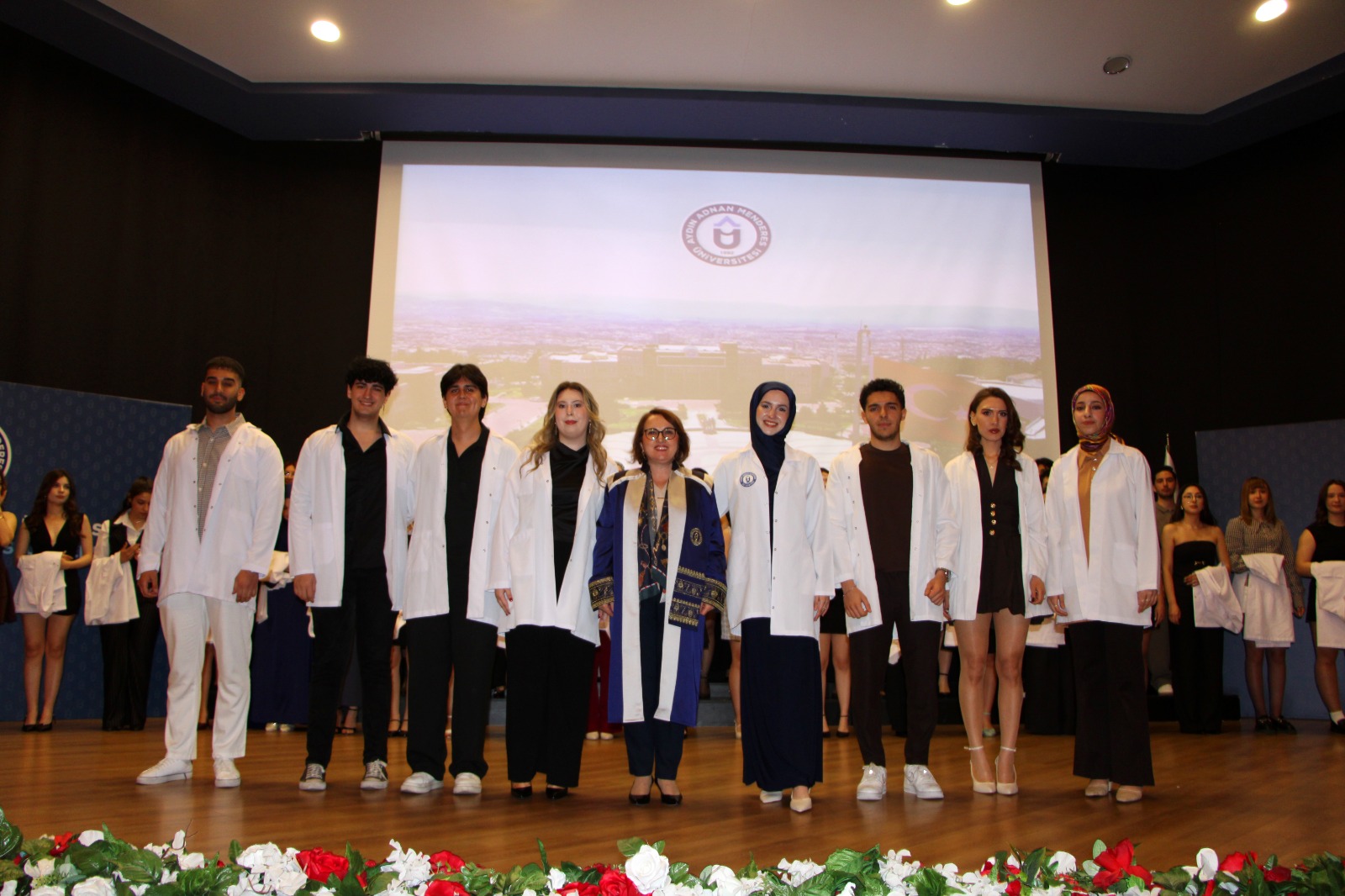 Öğrencilerin, akademisyenler tarafından kendilerine takdim edilen beyaz önlükleri gururla giymesinin ardından tören, toplu fotoğraf çekimiyle sona erdi.