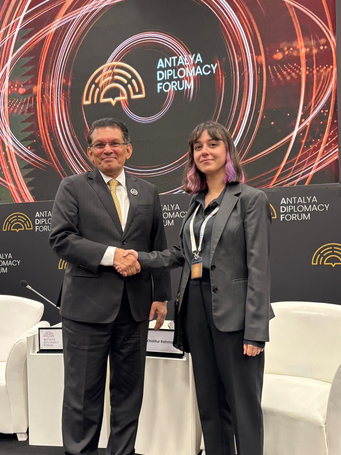 Öğrencimiz Efnan Bircan, forum süresince Türkiye Cumhuriyeti NATO Daimi Temsilcisi ve Dışişleri Bakan Yardımcısı Zeki Levent Gümrükçü, Bangladeş Dışişleri Bakanı Khalilur Rahman, diplomat Hami Aksoy, Türkiye Maarif Vakfı Başkanı Mahmut Özdil ile farklı ülkelerden üst düzey temsilcilerle birebir görüşmeler gerçekleştirerek uluslararası diplomasi ortamını yakından deneyimledi.