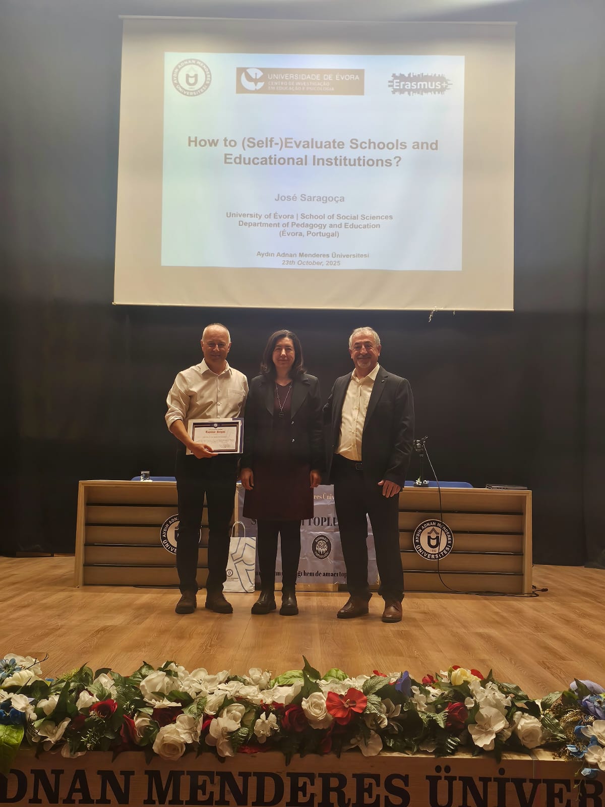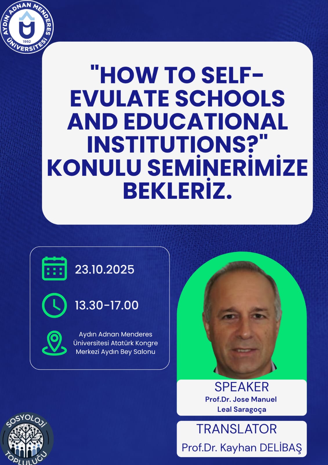 Sosyoloji Topluluğu tarafından düzenlenen etkinlik kapsamında Prof. Dr. Saragoça, 23 Ekim 2025 tarihinde Üniversitemiz Atatürk Kongre Merkezinde “How to Self Evaluate Schools and Educational Institutions?” başlıklı bir sunum gerçekleştirdi. Konuşmasında, eğitim sistemindeki eşitsizlikleri önleme girişimi olarak eğitim kurumlarının öz değerlendirme süreçlerinin önemine değindi.