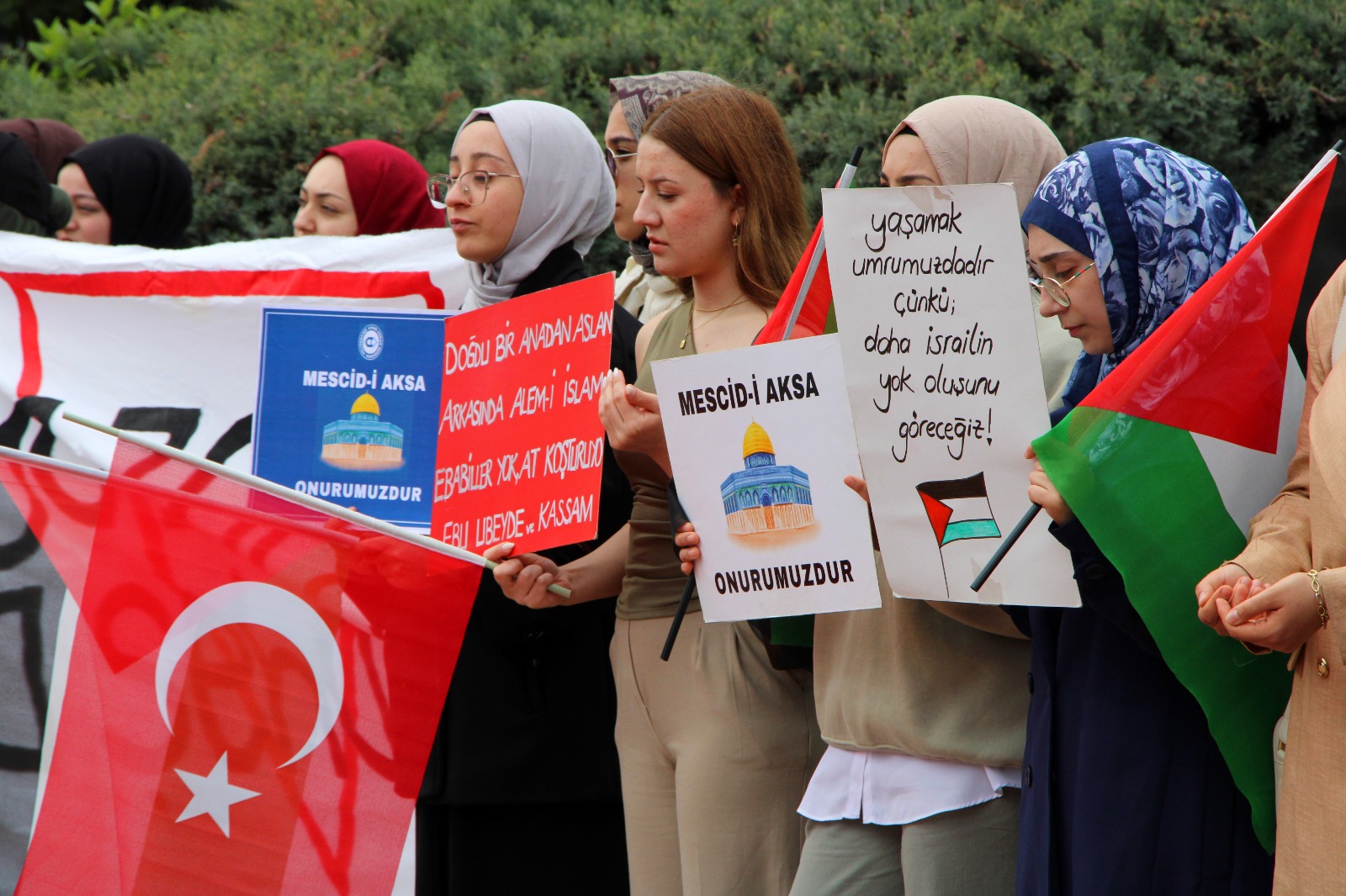 Farklı öğrenci topluluklarının iş birliğiyle organize edilen etkinlikte, katılımcılar ellerinde Filistin bayrakları ve çeşitli pankartlarla mazlum coğrafyalarda yaşanan insan hakları ihlallerine dikkat çekti. Barışçıl bir atmosferde gerçekleşen buluşmada, Filistin halkına uygulanan abluka, yaşam hakkını ihlal eden insani koşullar ve sivil halka yönelik saldırılar protesto edildi.