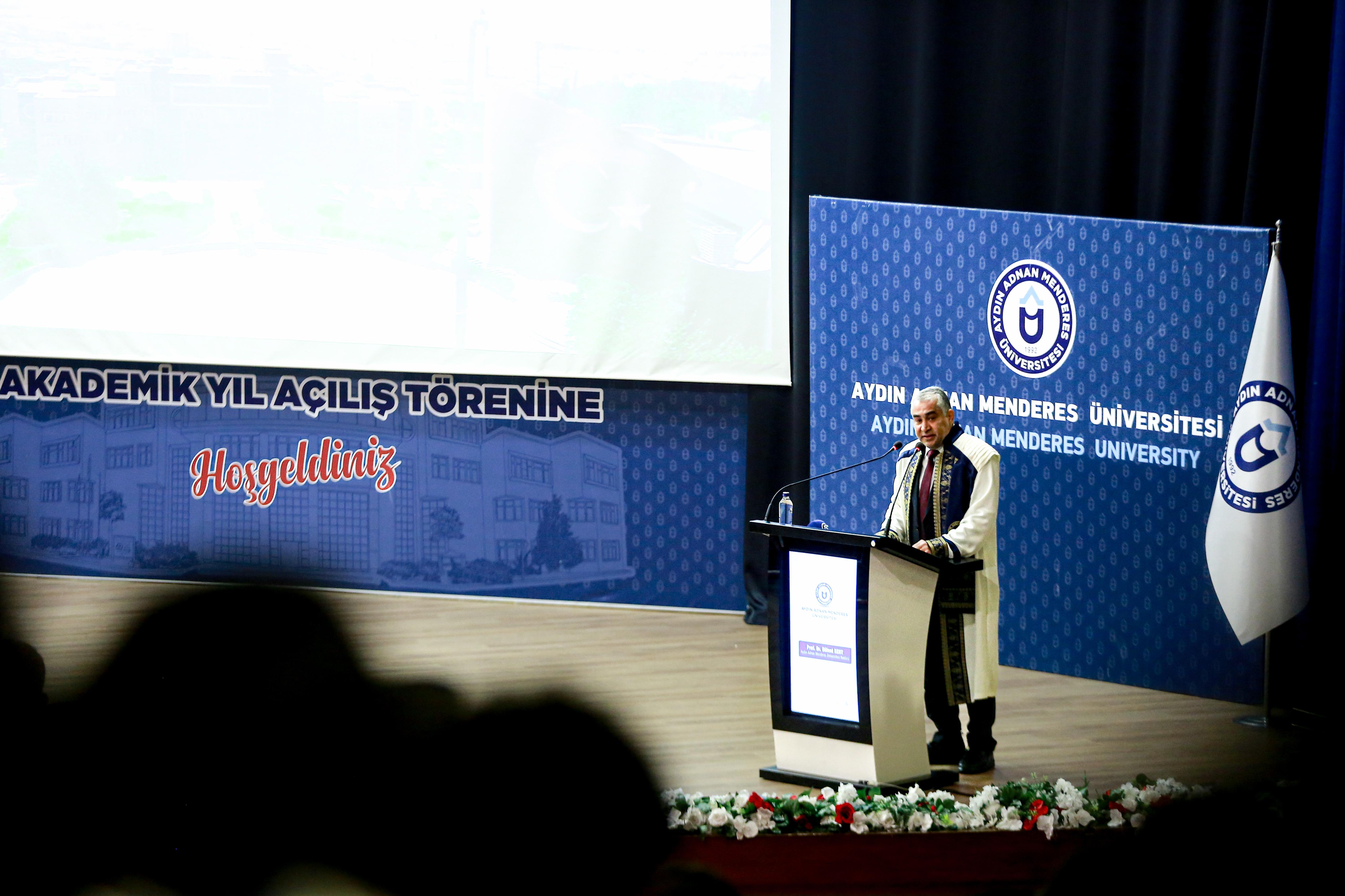 Atatürk Kongre Merkezi Yörük Ali Efe Salonu’nda gerçekleştirilen program, Saygı Duruşu ve İstiklal Marşı’nın ardından Üniversitemiz tanıtım filminin izlenmesiyle başladı. ADÜ TV’de canlı yayımlanan ve eş zamanlı olarak Aydın Bey Salonu’nda da takip edilen törende, Rektörümüz Prof. Dr. Bülent Kent açış konuşmasını yaptı.
