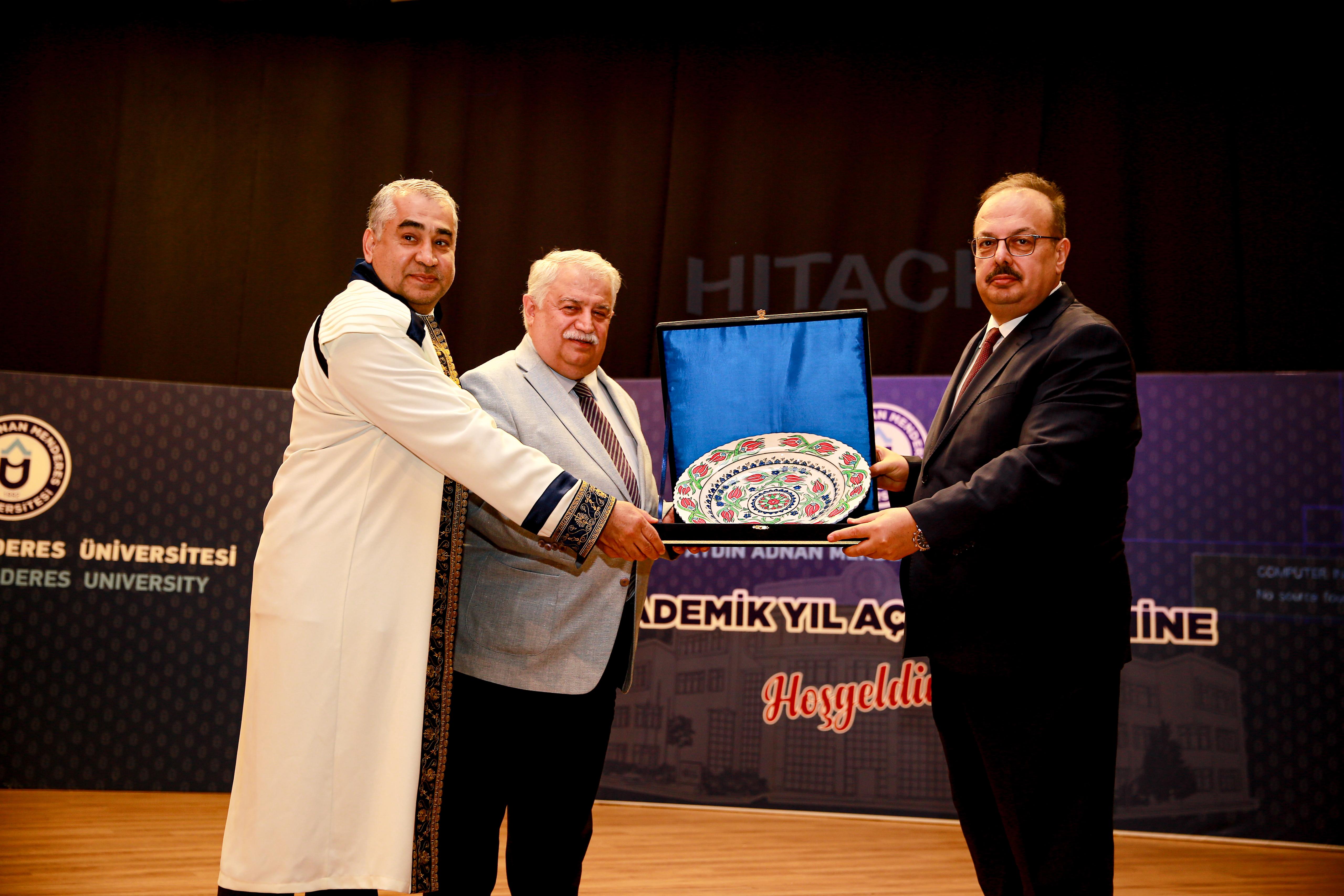 Üniversitemiz Rektörü Prof. Dr. Bülent Kent’in ev sahipliğinde gerçekleşen törene; Aydın Valisi Yakup Canbolat, 2. İdare Mahkemesi Başkanı Soner Akbaş, İzmir Demokrasi Üniversitesi Rektörü Prof. Dr. Selim Karahasanoğlu, Muğla Sıtkı Koçman Üniversitesi Rektörü Prof. Dr. Turhan Kaçar, Baro Başkanı Av. Utku Devrim Barış Arslan, İl Emniyet Müdürü Armağan Adnan Erdoğan, İl Jandarma Komutanı Tuğgeneral Necip Çarıkcıoğlu, Efeler Belediye Başkanı Anıl Yetişkin, ilçe belediye başkanları, Üniversitemiz Rektör Yardımcıları Prof. Dr. Cemal İyem, Prof. Dr. Erkan Salan ve Prof. Dr. Cengiz Özarslan, Genel Sekreter V. Prof. Dr. Bertan Akyol, siyasi parti temsilcileri, il müdürleri, oda başkanları, sivil toplum kuruluşu temsilcileri, basın mensupları, Üniversitemiz akademik ve idari personeli ile öğrencileri katıldı.