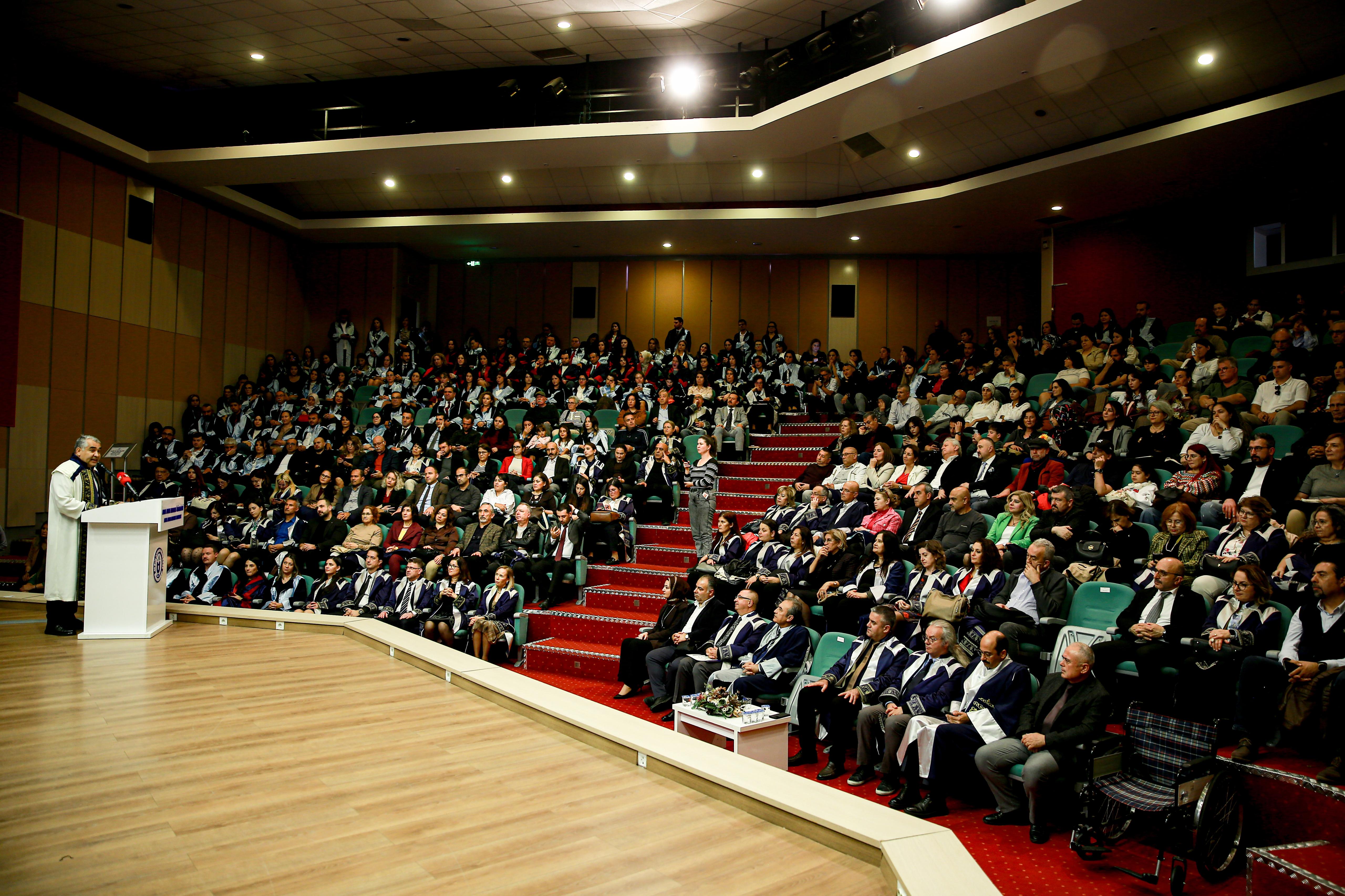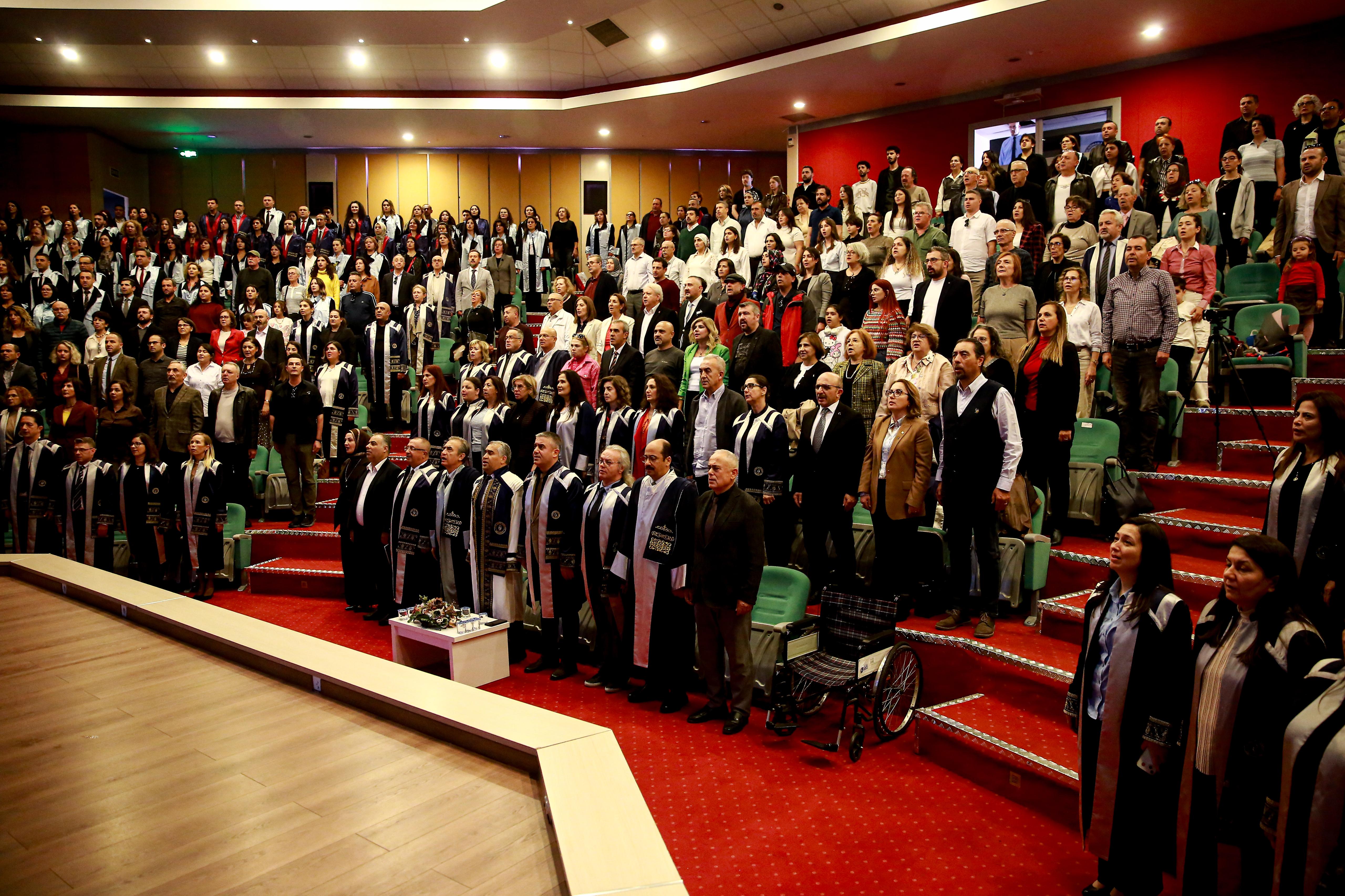 Saygı Duruşu ve İstiklal Marşı ile başlayan program, Üniversitemiz Çok Sesli Korosu’nun müzik dinletisiyle devam etti. Törende mezunlar adına Dr. Dilek Canlar Akar, enstitüler adına ise Sosyal Bilimler Enstitüsü Müdürü Prof. Dr. Ahmet Toksoy konuşma yaptı.