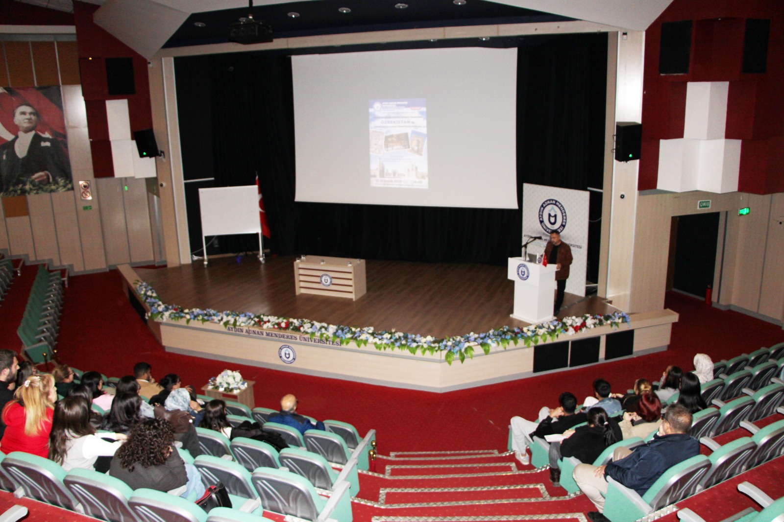Konferansta konuşmacı olarak yer alan Sanat Tarihi Uygulama ve Araştırma Merkezi Müdürü Prof. Dr. Mustafa Kemal Şahin, Özbekistan coğrafyasında yer alan tarihi yapıların Anadolu Selçuklu mimarisi üzerindeki etkilerini örnekler üzerinden ele alarak, bu etkileşimin Selçuklu dönemi sanatının şekillenmesindeki önemine dikkat çekti.