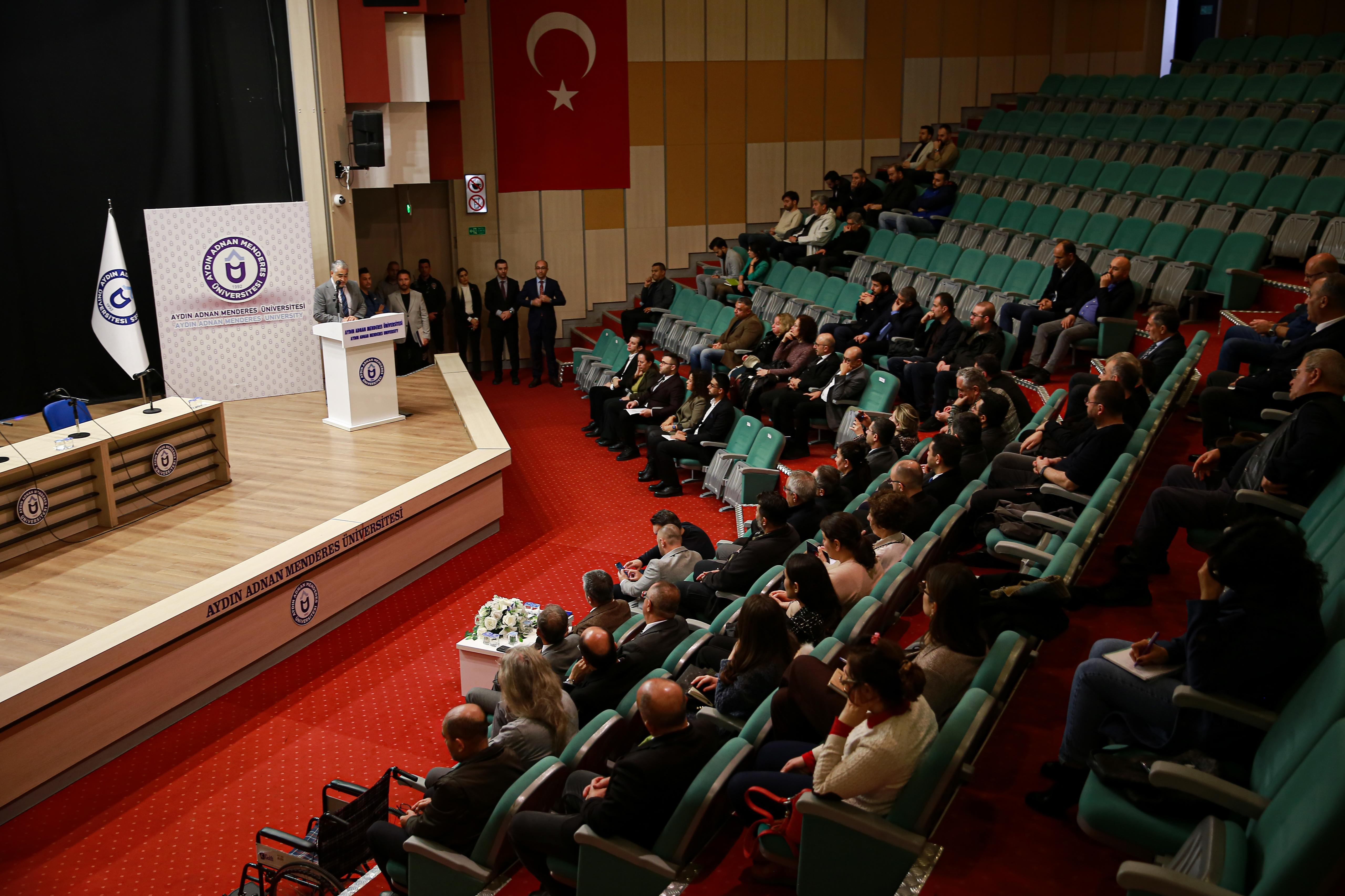 Rektörümüz Prof. Dr. Bülent Kent, 15-16 Nisan 2026 tarihlerinde 50 binden fazla öğrencinin yanı sıra yüzlerce firma ile kamu ve iş dünyasının önemli temsilcilerinin Üniversitemiz tarafından ağırlanacağı kapsamlı bir organizasyon sürecine girildiğini belirtti. EGEKAF’ın temel amacının öğrenciler ile iş dünyası arasında güçlü ve sürdürülebilir bağlar kurmak olduğunu vurgulayan Rektörümüz, gerçekleştirilecek temasların öğrenciler için staj ve istihdam imkânlarına dönüşeceğini ifade etti. EGEKAF 2026 hazırlık sürecinin kurumsal aidiyet duygusunu ve ortak çalışma kültürünü pekiştireceğini dile getiren Rektörümüz, Aydın Adnan Menderes Üniversitesinin bugüne kadar düzenlenen en kapsamlı, en verimli ve en nitelikli EGEKAF organizasyonuna ev sahipliği yapacağına olan inancını paylaştı.