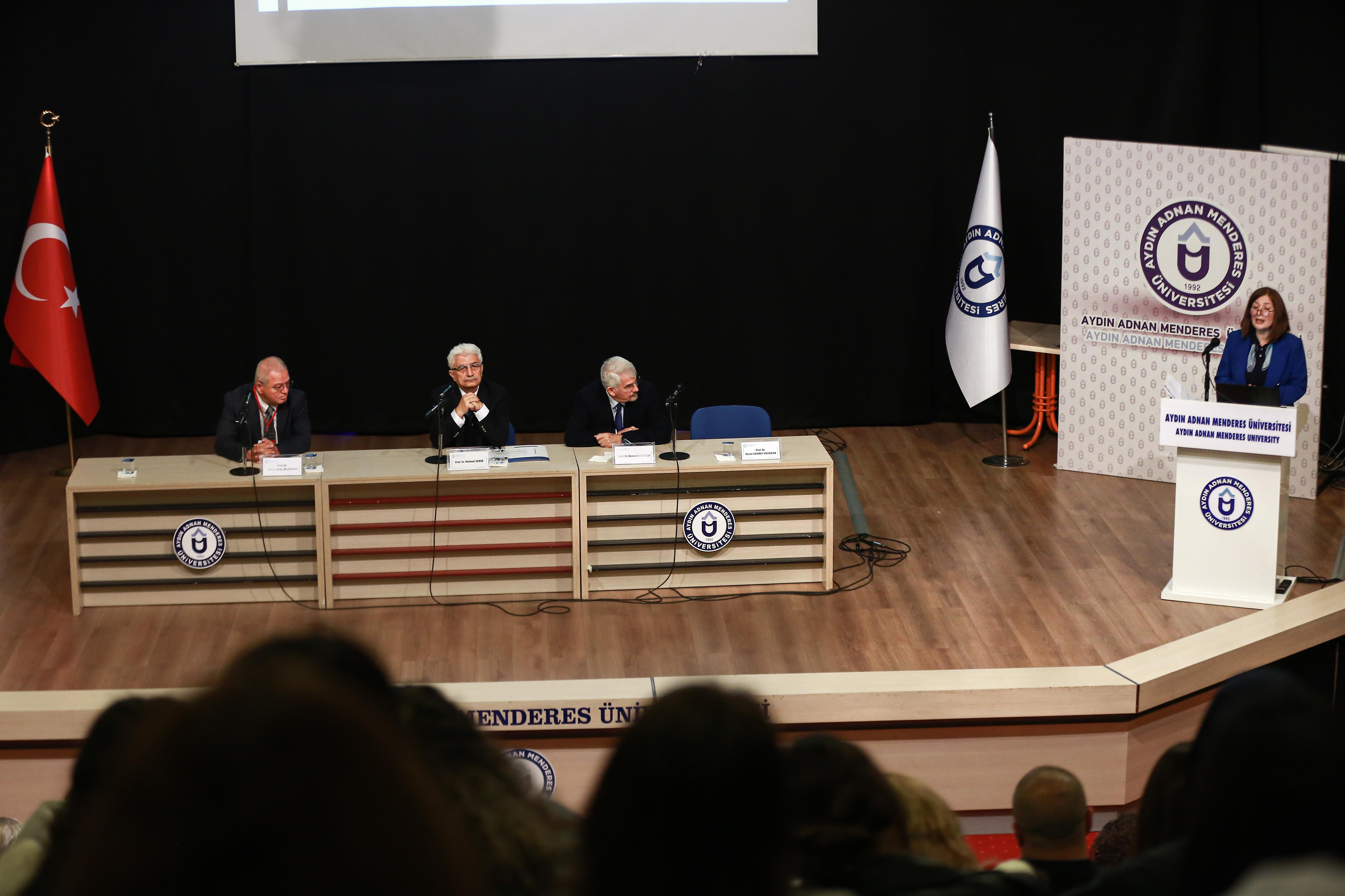 Sempozyumun ilk oturumunun başkanlığını Prof. Dr. Mehmet Şeker üstlenirken, Prof. Dr. Aysun Sarıbey Haykıran “Aydın Tarihi ve Tarih Çalışmalarına Toplu Bir Bakış”, Prof. Dr. Kemal Benlioğlu “Aydın’da Tarımın Gelişimine Bir Bakış” ve Prof. Dr. Osman Eralp Çolakoğlu “Aydın’da Turizm” başlıklı sunumlarını gerçekleştirdi.