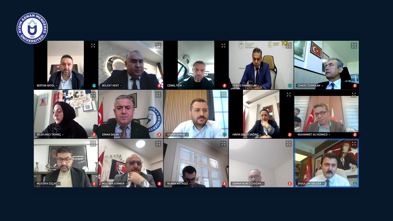 Üniversitemiz Rektörü Prof. Dr. Bülent Kent’in başkanlığında düzenlenen toplantıya; Rektör Yardımcıları Prof. Dr. Cemal İyem, Prof. Dr. Erkan Salan ve Prof. Dr. Cengiz Özarslan, Genel Sekreter V. Prof. Dr. Bertan Akyol, Aydın’da faaliyet gösteren kamu kurumları, kamu kurumu niteliğinde meslek kuruluşları ve sivil toplum kuruluşlarının yetkilileri toplantıya katıldı.