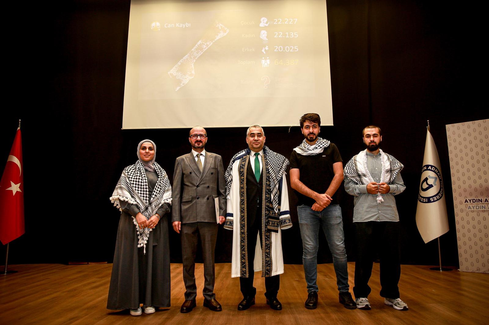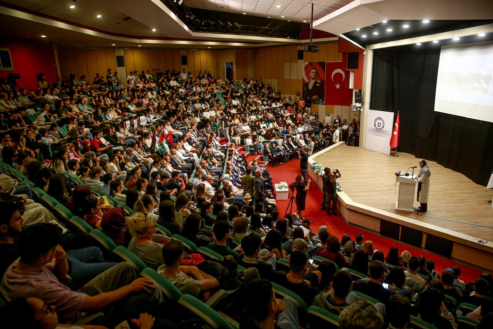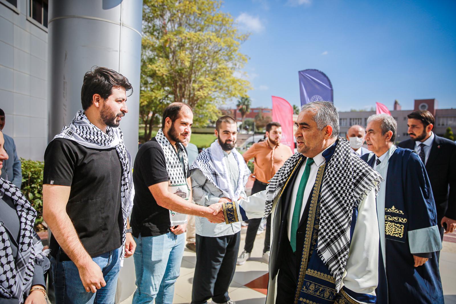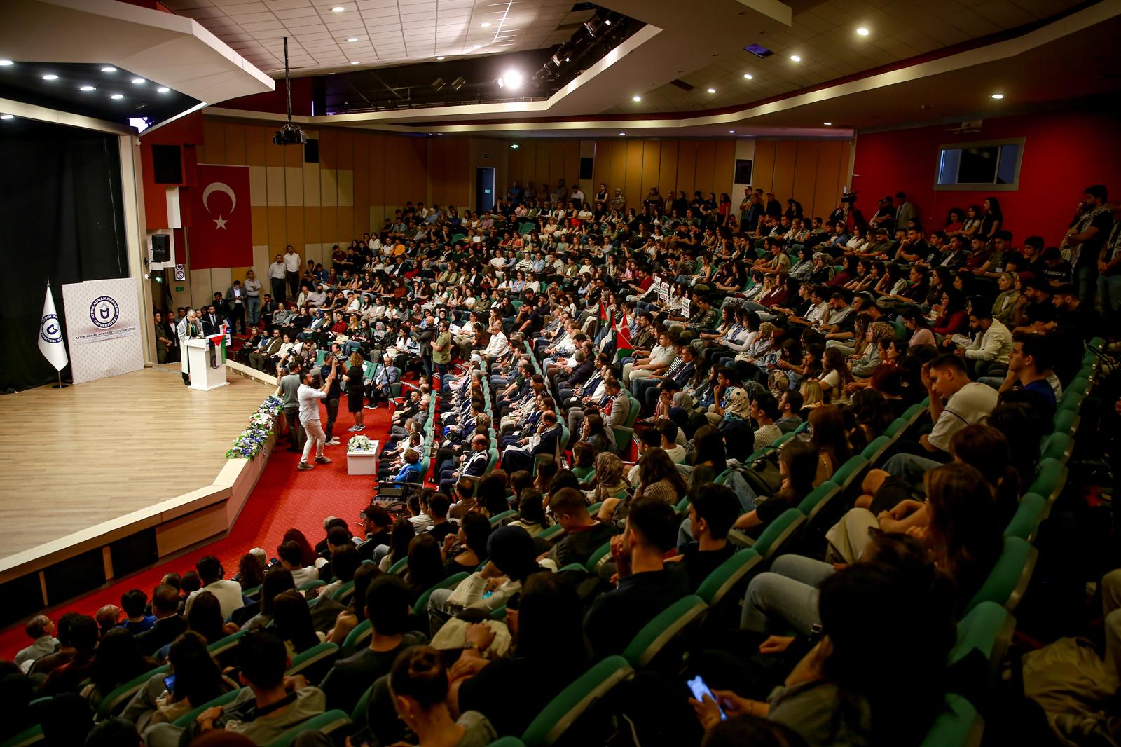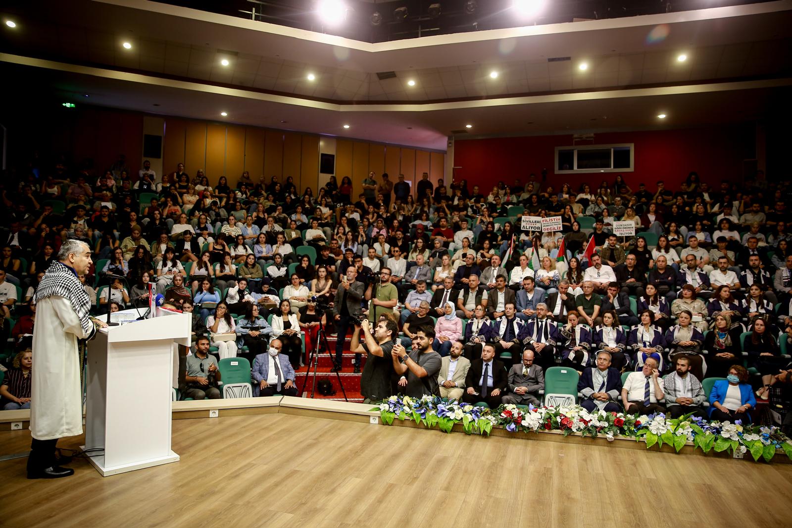 Üniversitelerin yalnızca bilim üreten değil, aynı zamanda değer ve duruş ortaya koyan kurumlar olduğunu dile getiren Rektörümüz Prof. Dr. Bülent Kent, “Akademi, toplumun vicdanını ve ahlaki duyarlılığını canlı tutmakla yükümlüdür. Filistin meselesini anlamak, geçmişi yorumlayabilmek, bugünü doğru analiz edebilmek ve geleceğe dair daha adil bir dünya tasavvuru kurabilmek açısından büyük önem taşımaktadır.” dedi.