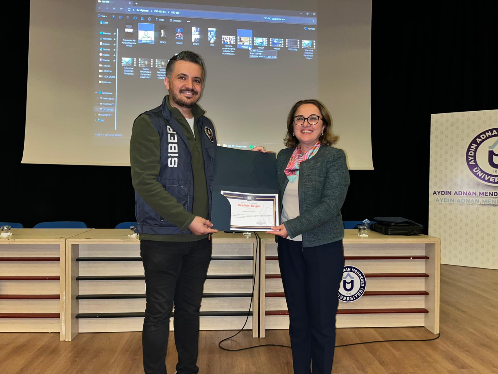 Eğitim programı, Fakülte Dekan V. Prof. Dr. Ayden Çoban’ın, katkılarından dolayı Siber Güvenlik Uzmanı Uğur Bulut’a teşekkür belgesi takdim etmesiyle sona erdi.