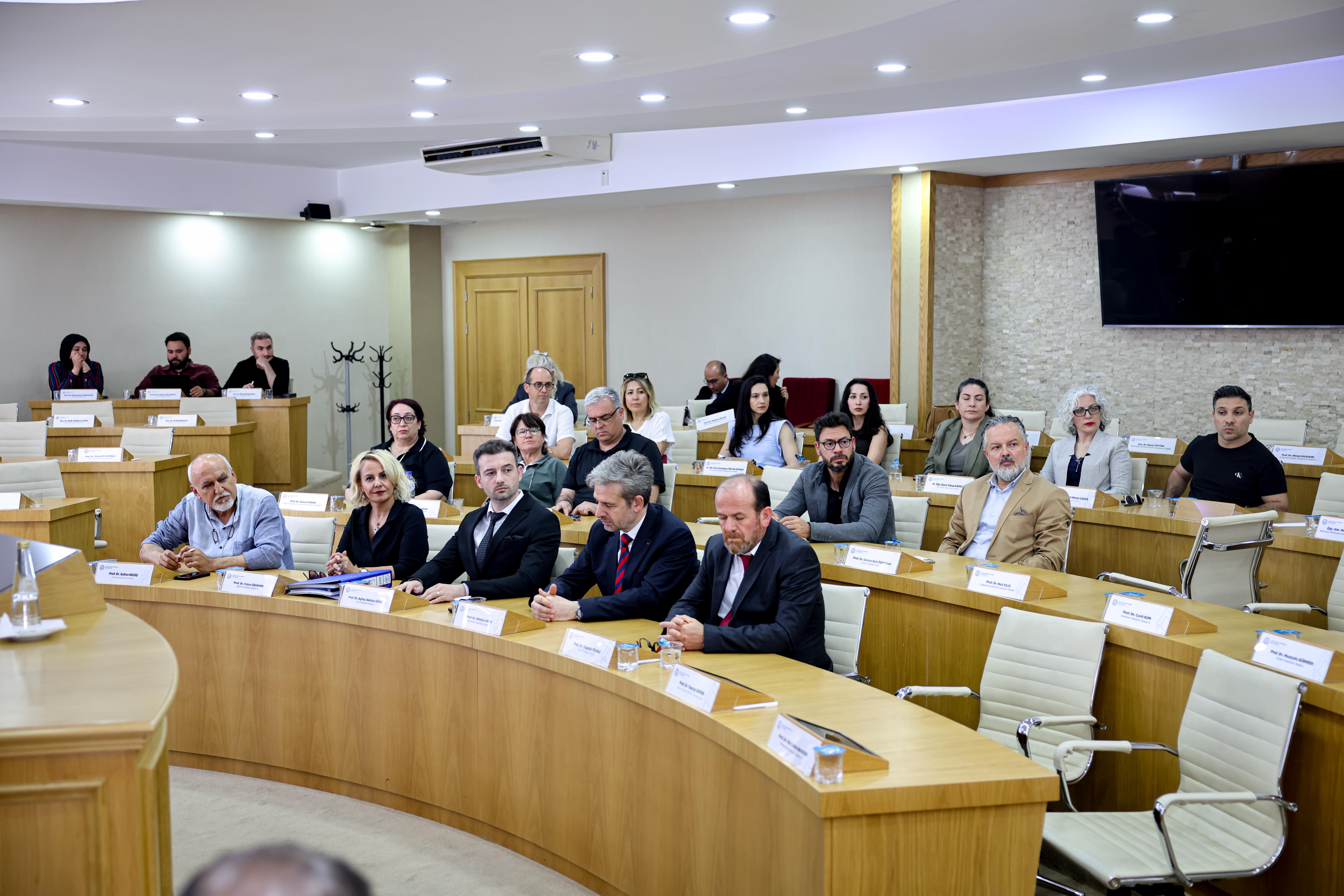 Toplantıya Üniversitemiz Rektörü Prof. Dr. Bülent Kent, Rektör Yardımcıları Prof. Dr. Cemal İyem ve Prof. Dr. Erkan Salan, Spor Bilimleri Fakültesi Dekan V. Prof. Dr. Erkan Çetinkaya’nın yanı sıra dekan yardımcıları, bölüm başkanları ile akademik ve idari personel katıldı.