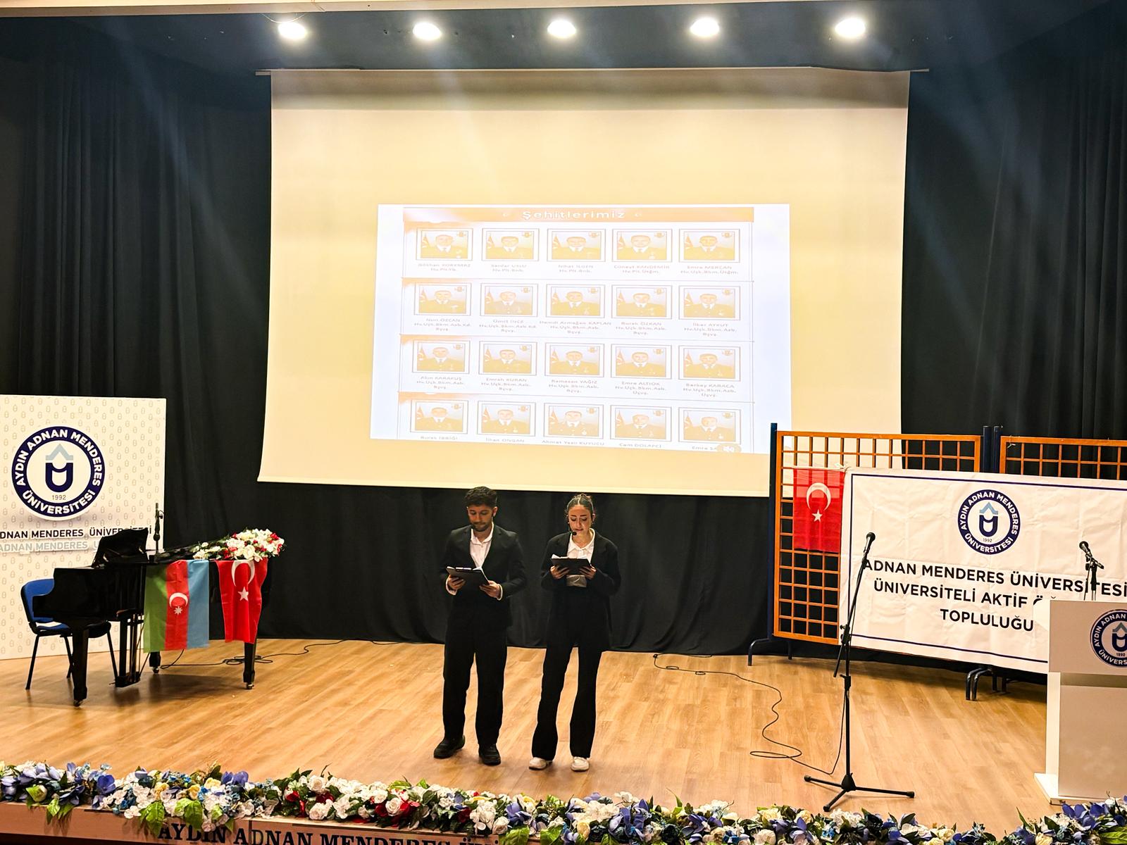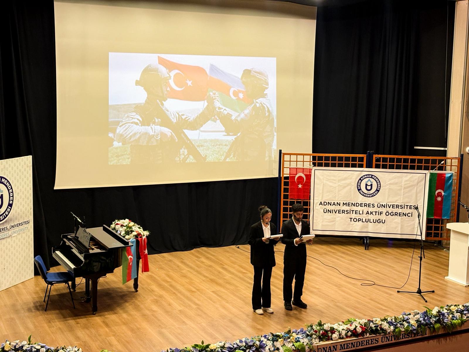 Üniversitemizin Azerbaycanlı öğrencilerinin katkılarıyla gerçekleştirilen etkinlikte, Karabağ Zaferi’nin anlamı ve Türkiye–Azerbaycan kardeşliğinin önemi vurgulandı. Birlik, dayanışma ve vatan sevgisinin ön plana çıktığı etkinlikte, meydana gelen uçak kazasında şehit olan 20 kahraman askerimiz de rahmet ve minnetle anıldı.