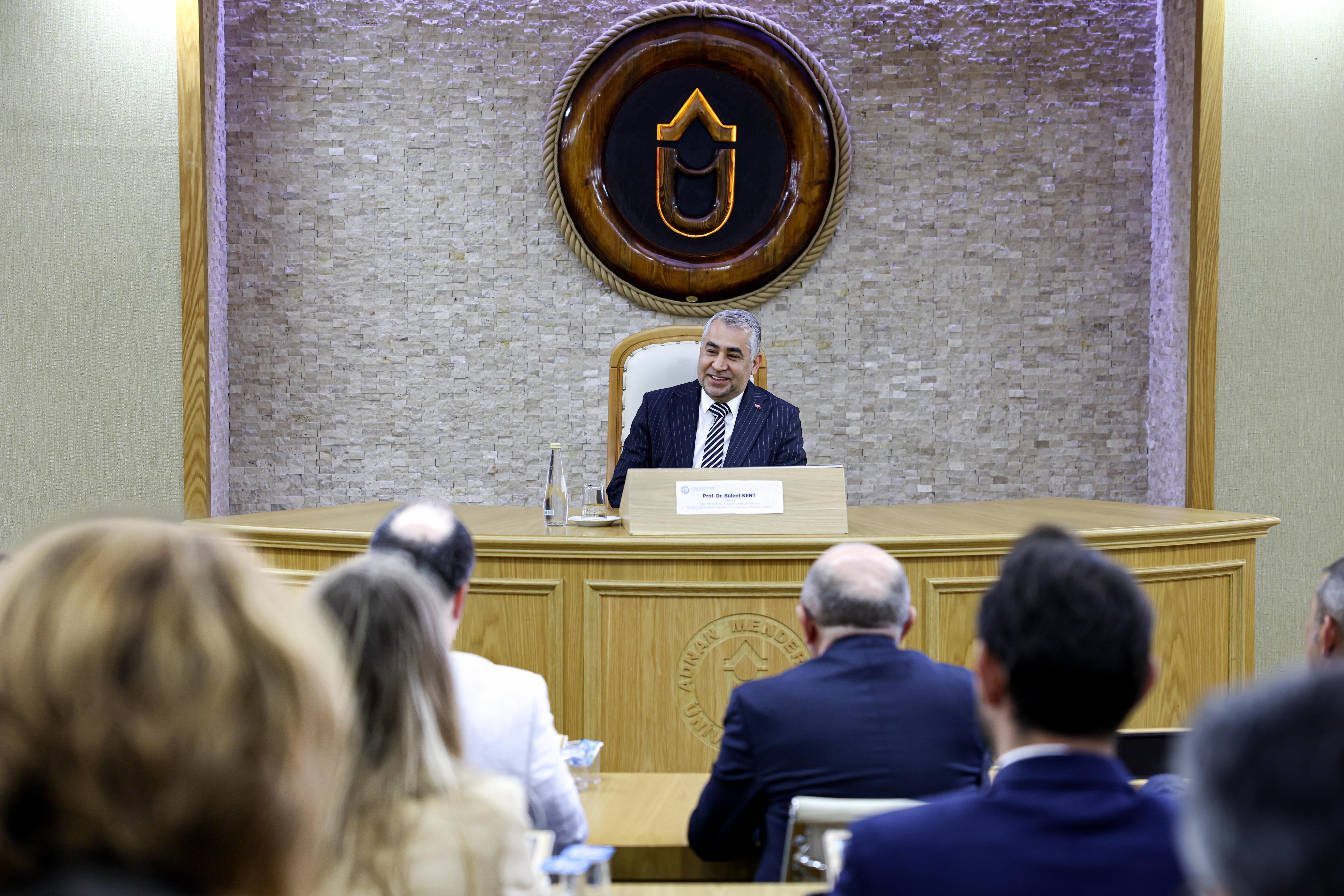 21 Nisan 2026 tarihinde Senato Salonu’nda gerçekleştirilen çıkış toplantısında konuşan Rektörümüz Prof. Dr. Bülent Kent, Üniversitemizin araştırma üniversitesi vizyonu doğrultusunda kalite güvencesi süreçlerine büyük önem verdiklerini belirtti. Akreditasyon çalışmalarının eğitim-öğretim faaliyetlerinin niteliğinin artırılmasına ve kurumsal gelişime önemli katkılar sunduğunu ifade eden Rektörümüz, sürece katkı sağlayan tüm akademik ve idari personele teşekkür etti.