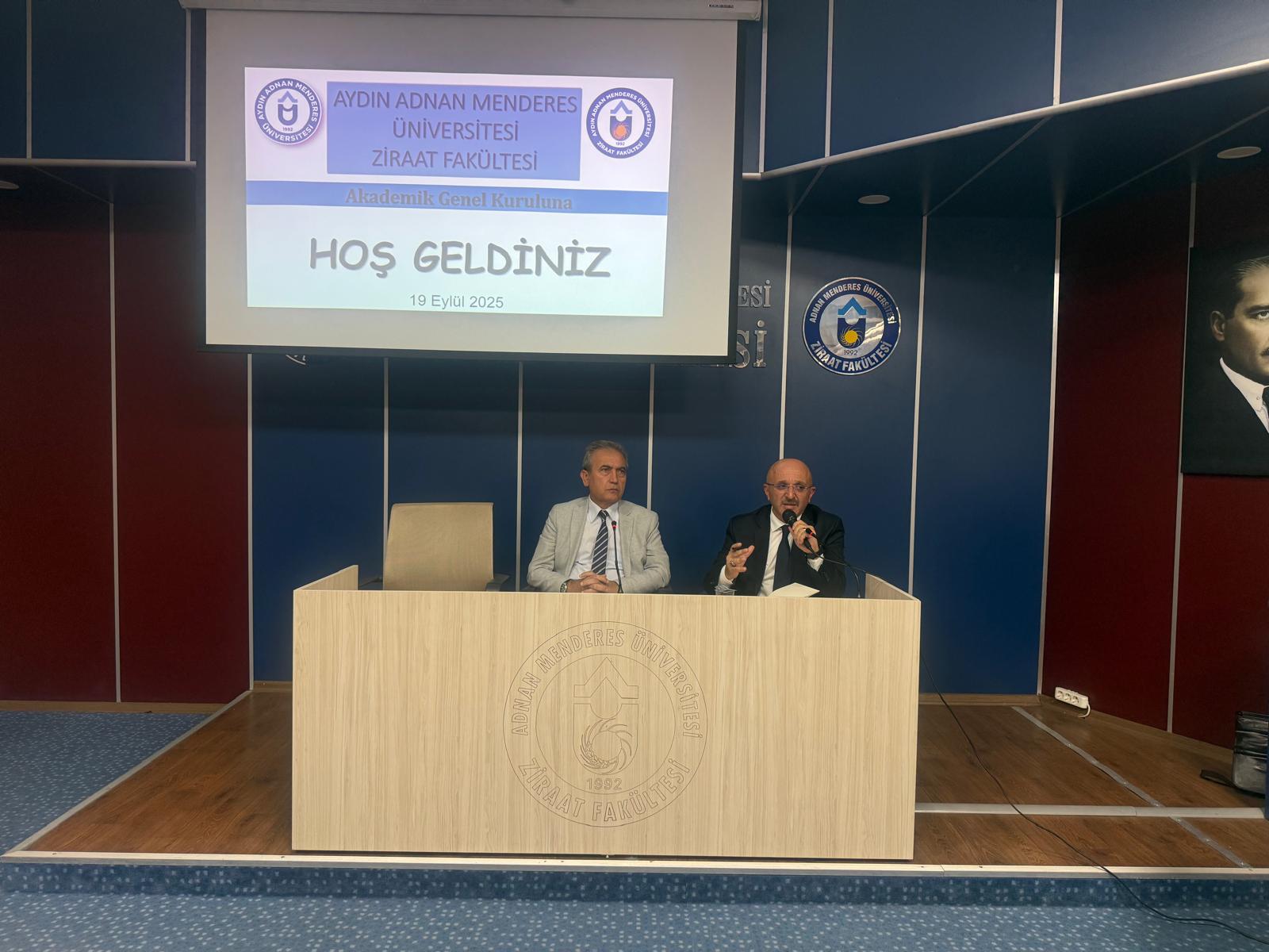Üniversitemiz Rektör Yardımcısı Prof. Dr. Cengiz Özarslan’ın katıldığı toplantıda, Ziraat Fakültesi Dekanı Prof. Dr. Mustafa Sürmen, fakülte bünyesinde yürütülen yayın, proje, etkinlik, eğitim ve akreditasyon çalışmalarına ilişkin bilgilendirme sunumu gerçekleştirdi. Ardından 2025-2026 Akademik Yılı güz dönemi hedefleri, ihtiyaçlar ve çözüm önerileri üzerine görüş alışverişinde bulunuldu. Soru-cevap bölümünde ise Üniversitemiz Rektör Yardımcısı Prof. Dr. Cengiz Özarslan ve Fakülte Dekanı Prof. Dr. Mustafa Sürmen katılımcıların sorularını yanıtladı.